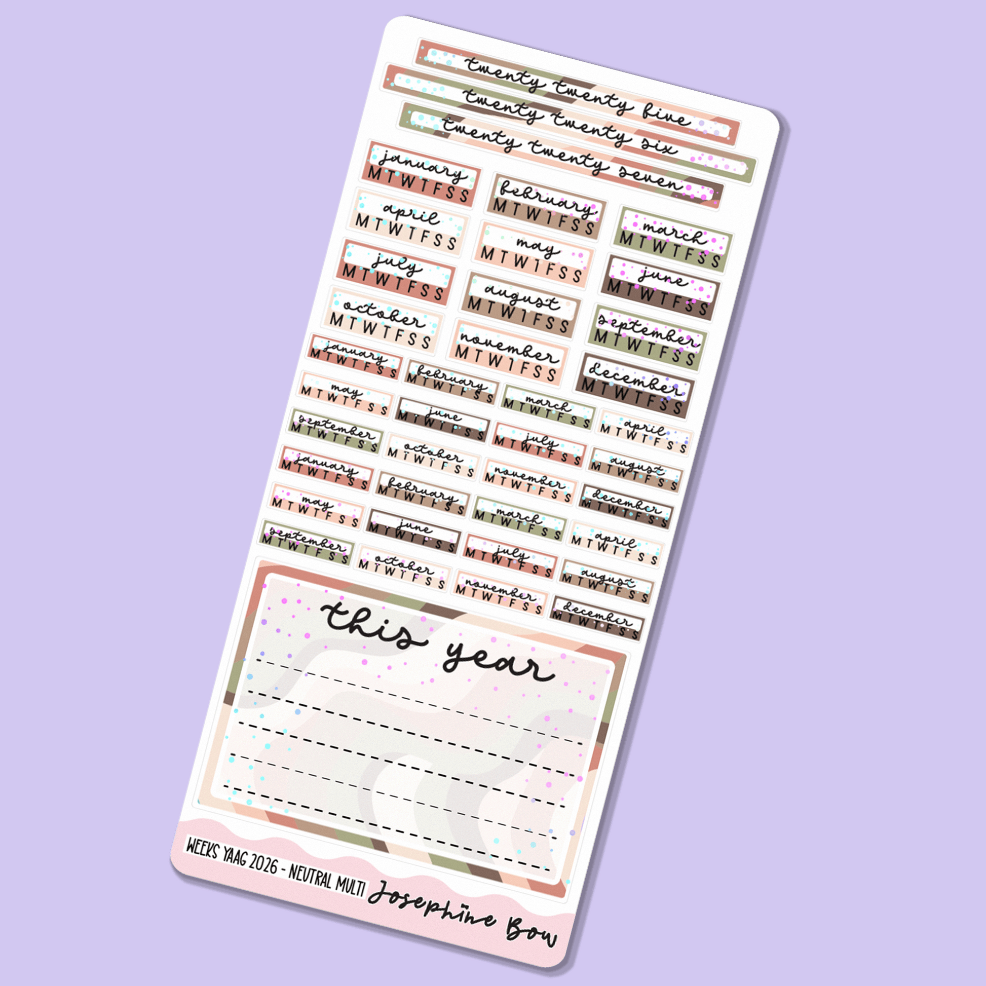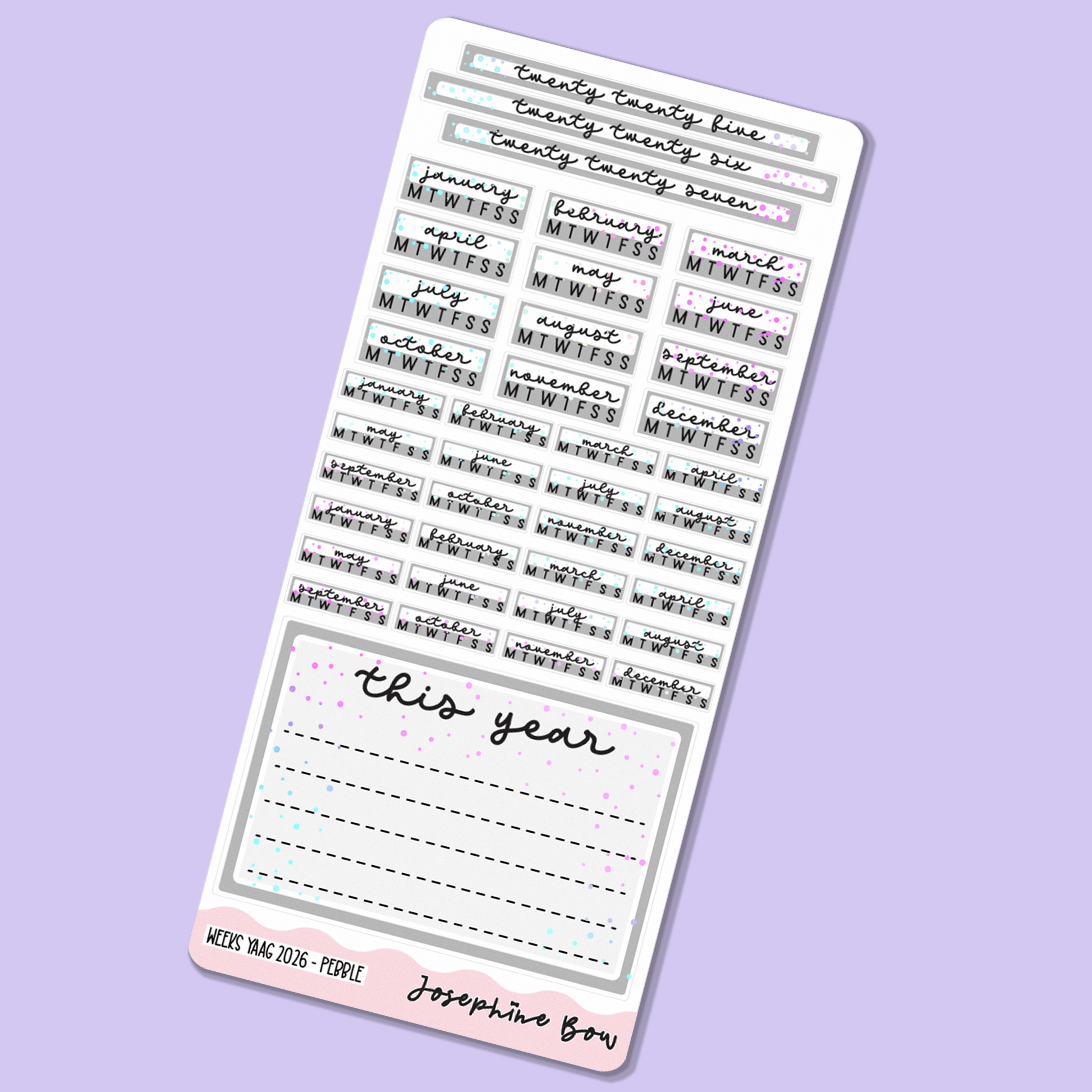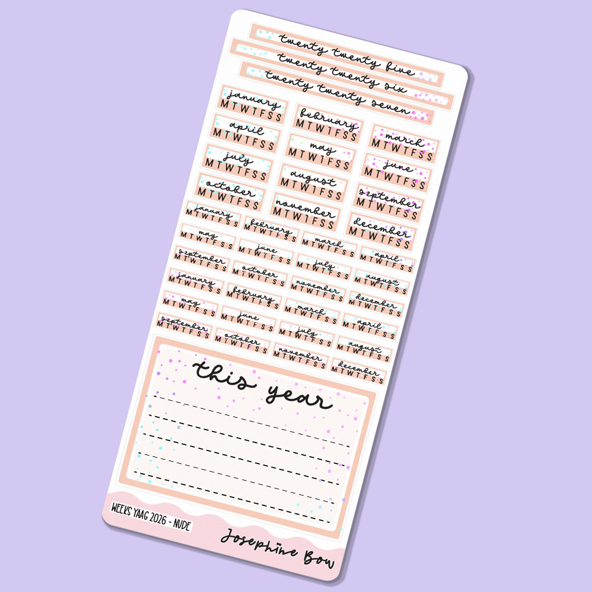 Start your year beautifully organised with this 2026 Year at a Glance overlay, designed especially for the Hobonichi Weeks. Perfect for your yearly overview section, this sheet adds a touch of shimmer and colour to your planner while keeping your whole year visible at once.