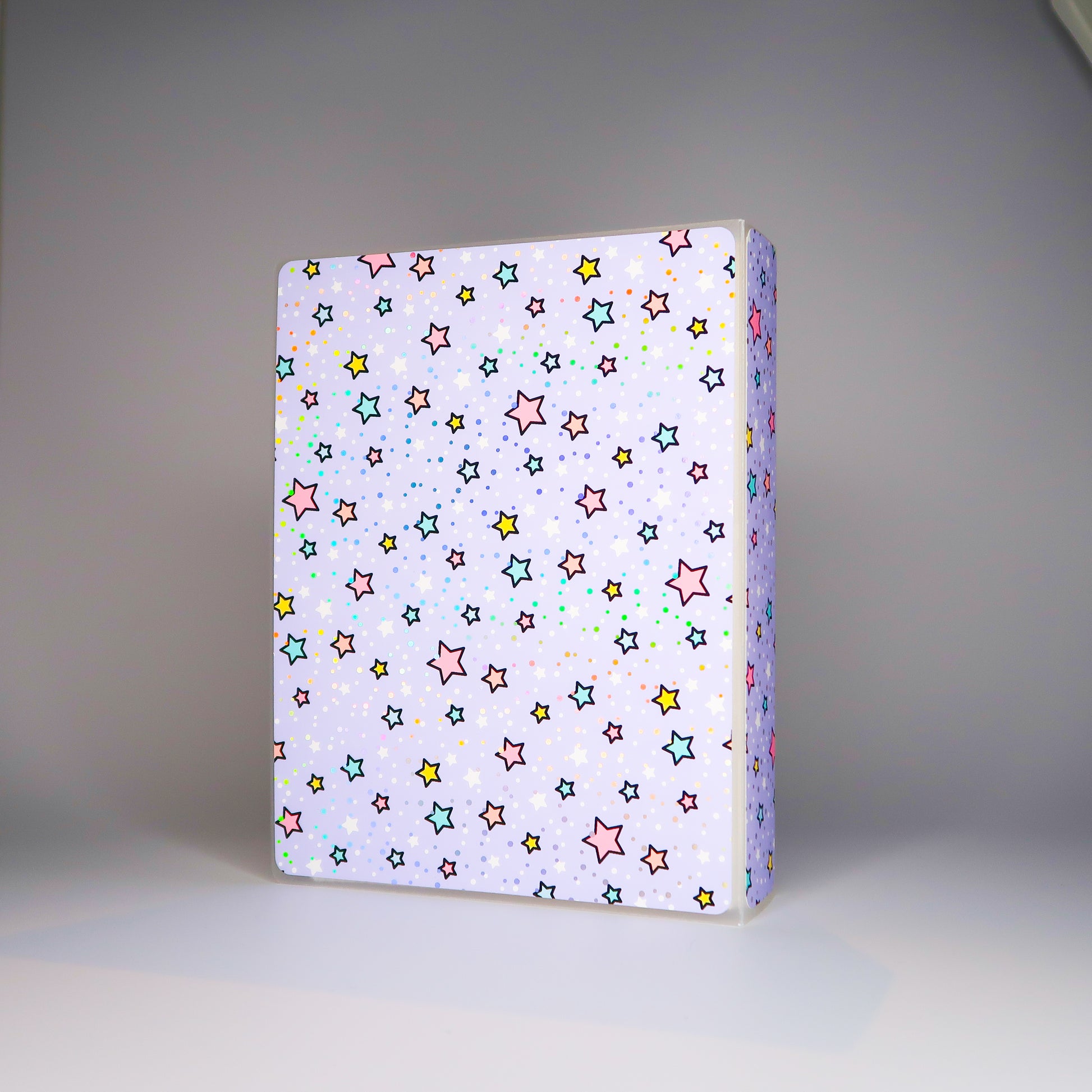 It has a strong but flexible cover with a printed and foiled design in vinyl and it contains 60 clear pockets inside. The outer dimensions are 155mm x 225mm x 40mm. The pocket dimensions are 195mm x 145mm.