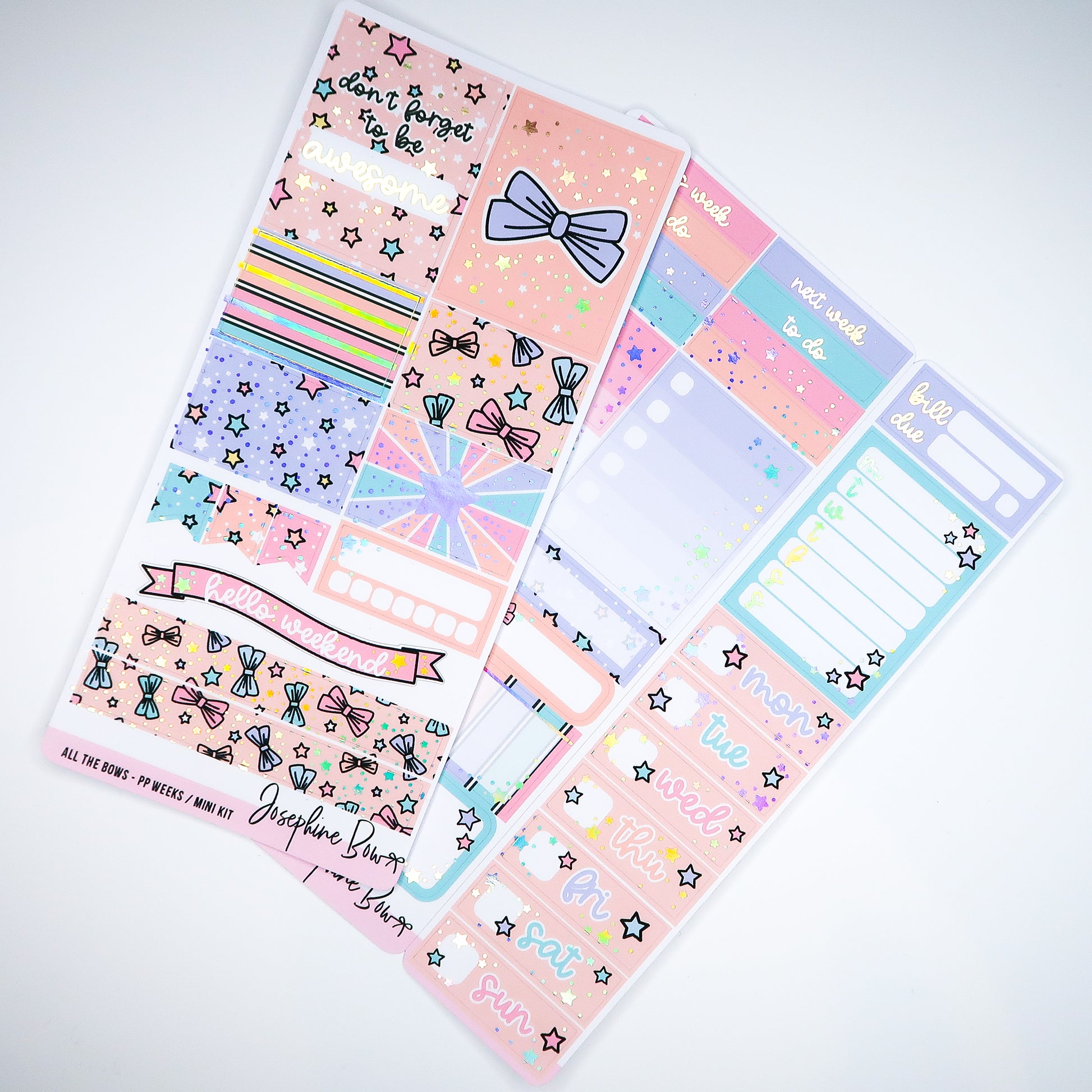 This is a holographic foiled weekly kit designed for the Print Pression Weeks, but this kit will also work well in personal, B6 or pocket planners or as a mini kit. The boxes are 1.5 inches wide so is compatible with many vertical planners.