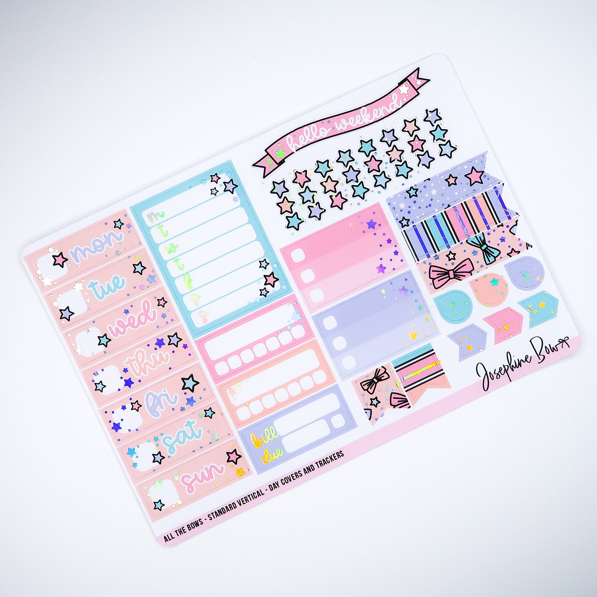 This is a holographic foiled weekly kit designed for vertical planners. It will fit any 1.5 inch vertical planner and the standard Happy Planner.