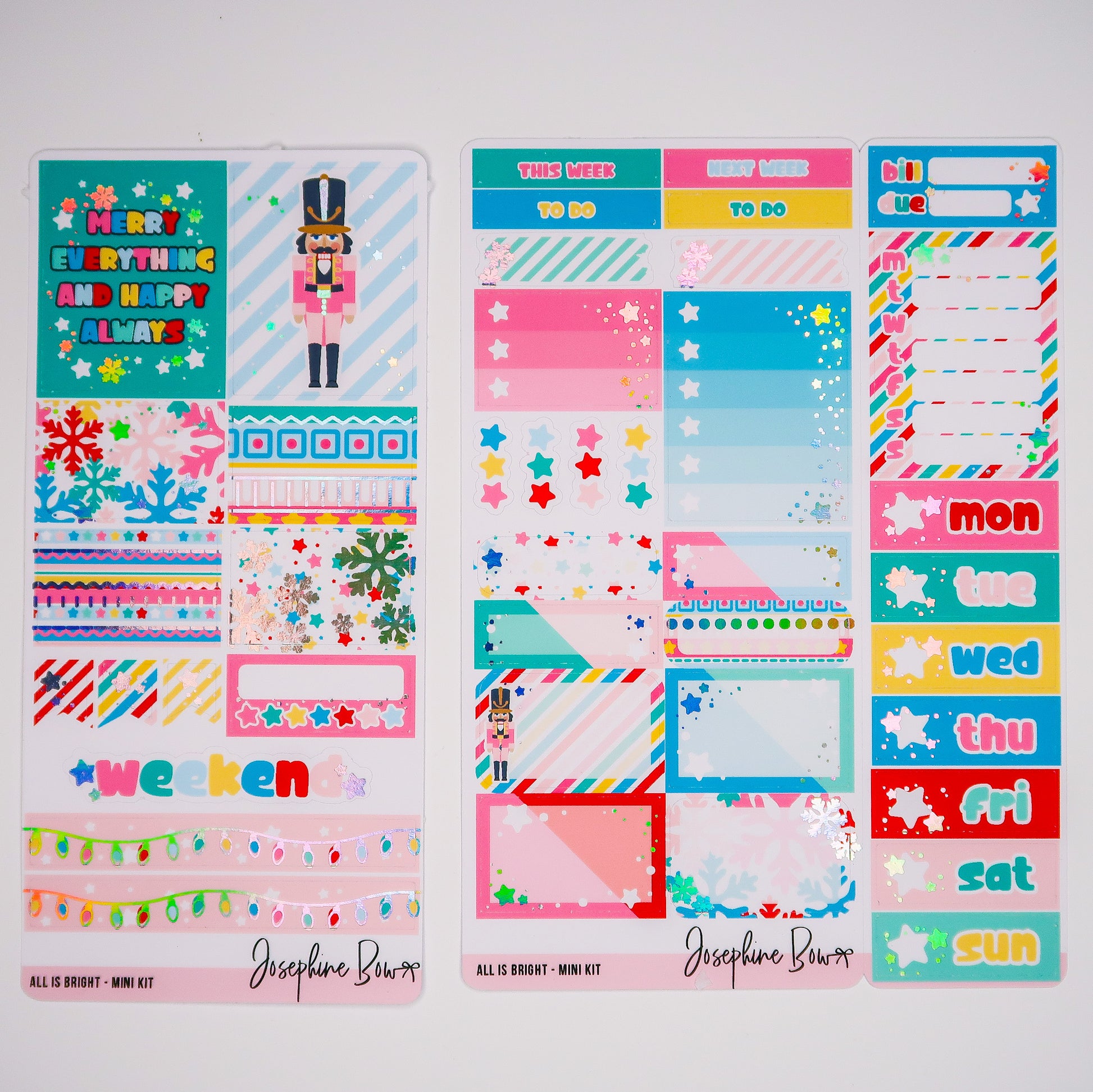This is a holographic foiled weekly kit designed for the Print Pression Weeks, however this kit will also work well in personal, B6 or pocket planners or as a mini kit. The boxes are 1.5 inches wide, so are compatible with many vertical planners.