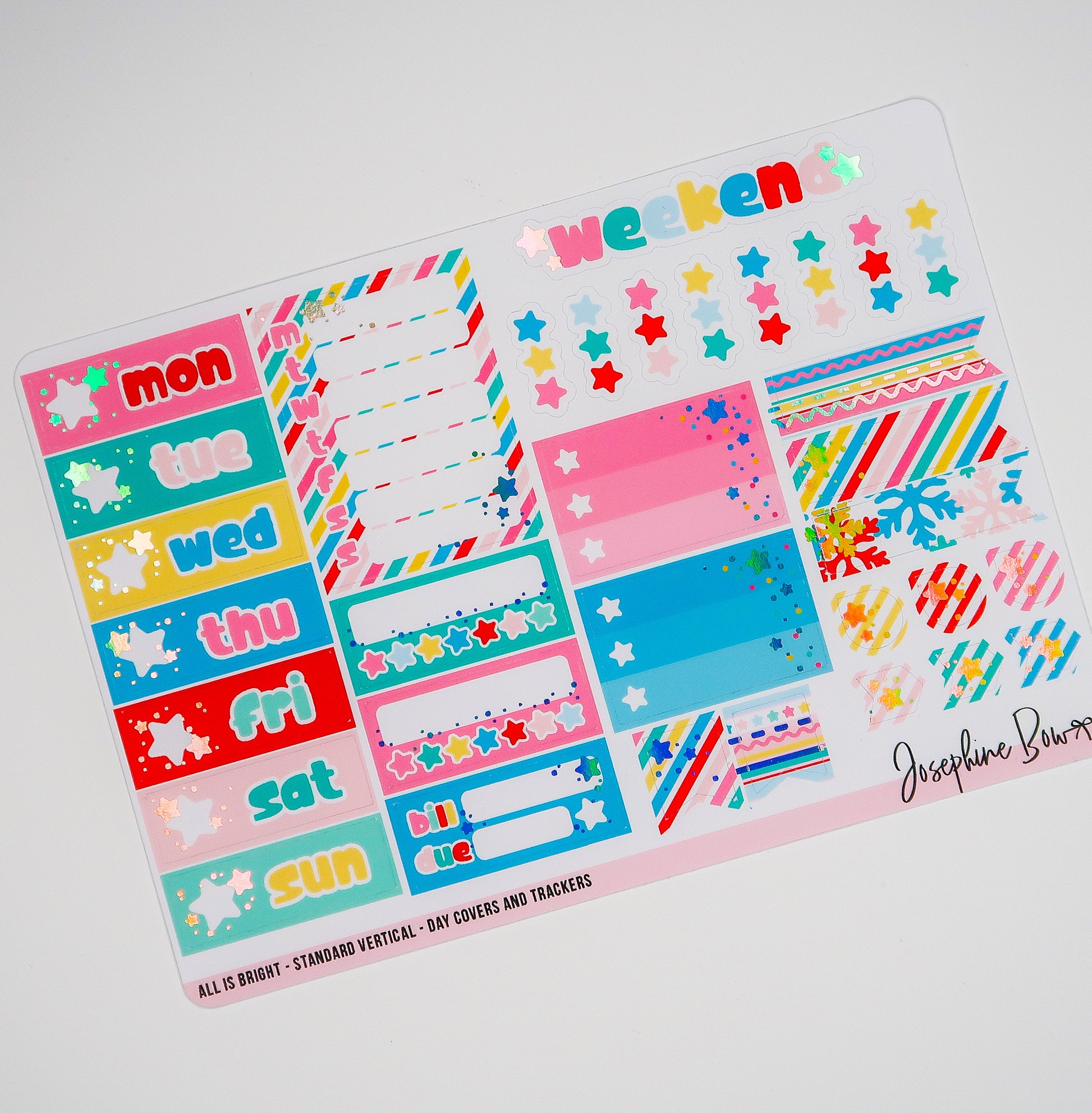 This is a holographic foiled weekly kit designed for vertical planners. It will fit any 1.5 inch vertical planner and the standard Happy Planner.