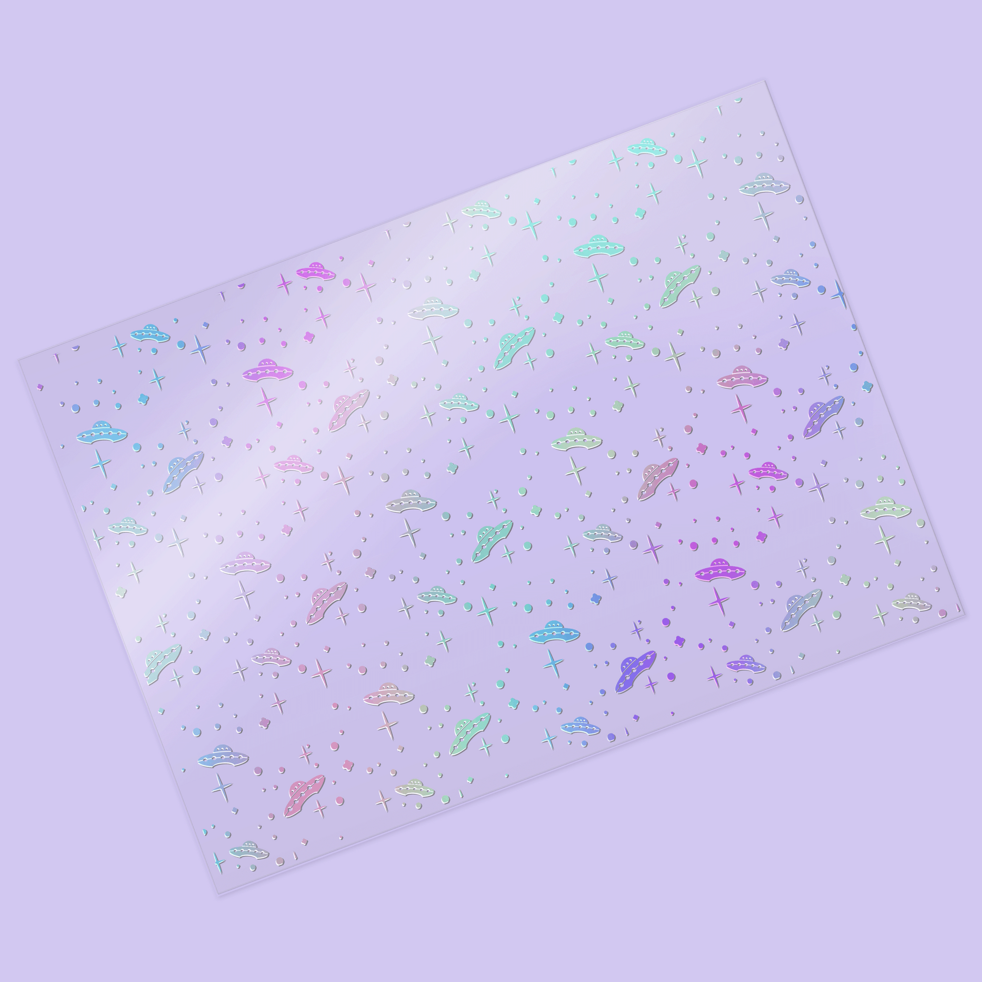 One sheet of foiled acetate with a scattered star and UFO design to compliment the Beam Me Up collection.