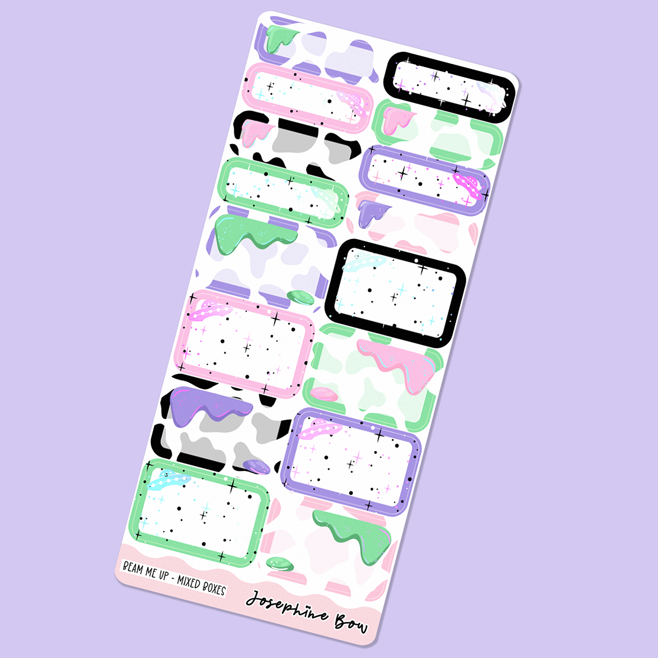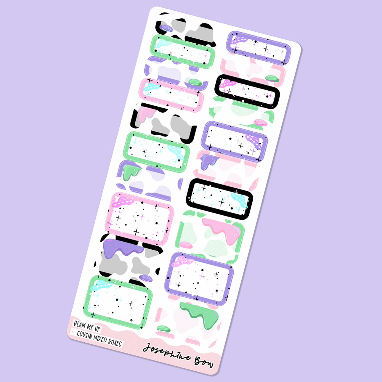 This is one sheet of mixed half and quarter boxes in a cute, alien UFO theme. These are great essentials to have in your collection for mixing with kits, co-ordinating with your favourite washi or just using to highlight a particularly important task or event.