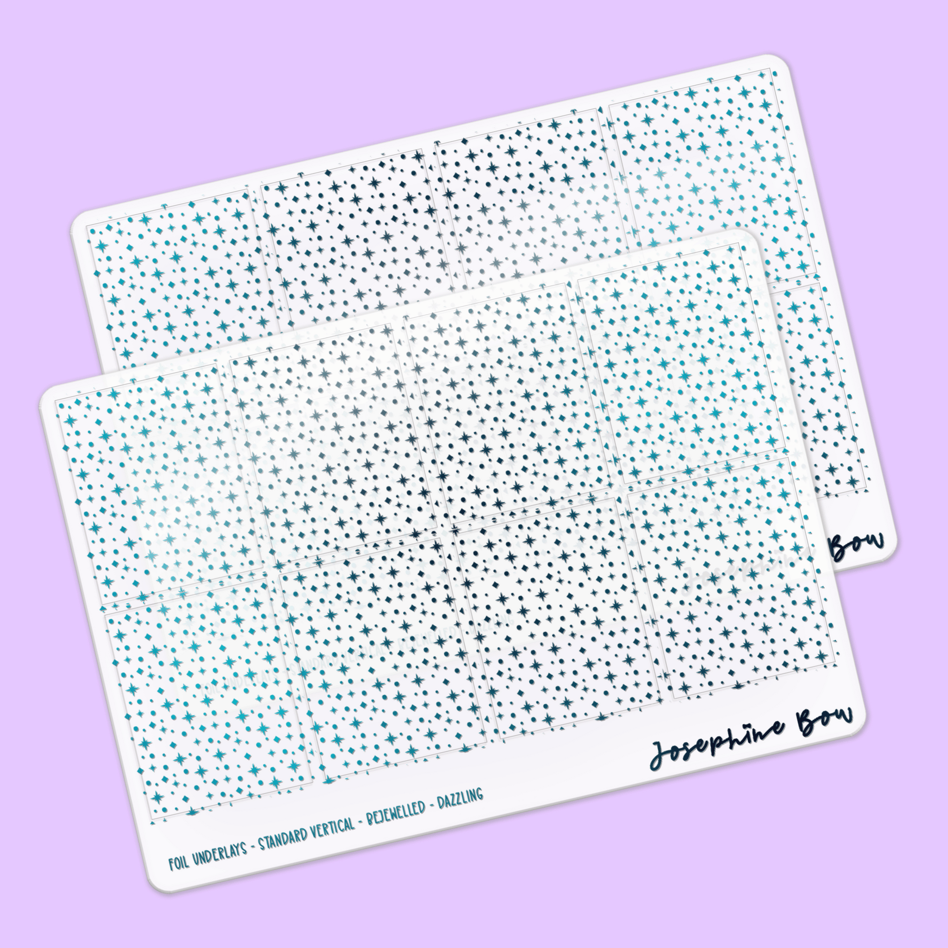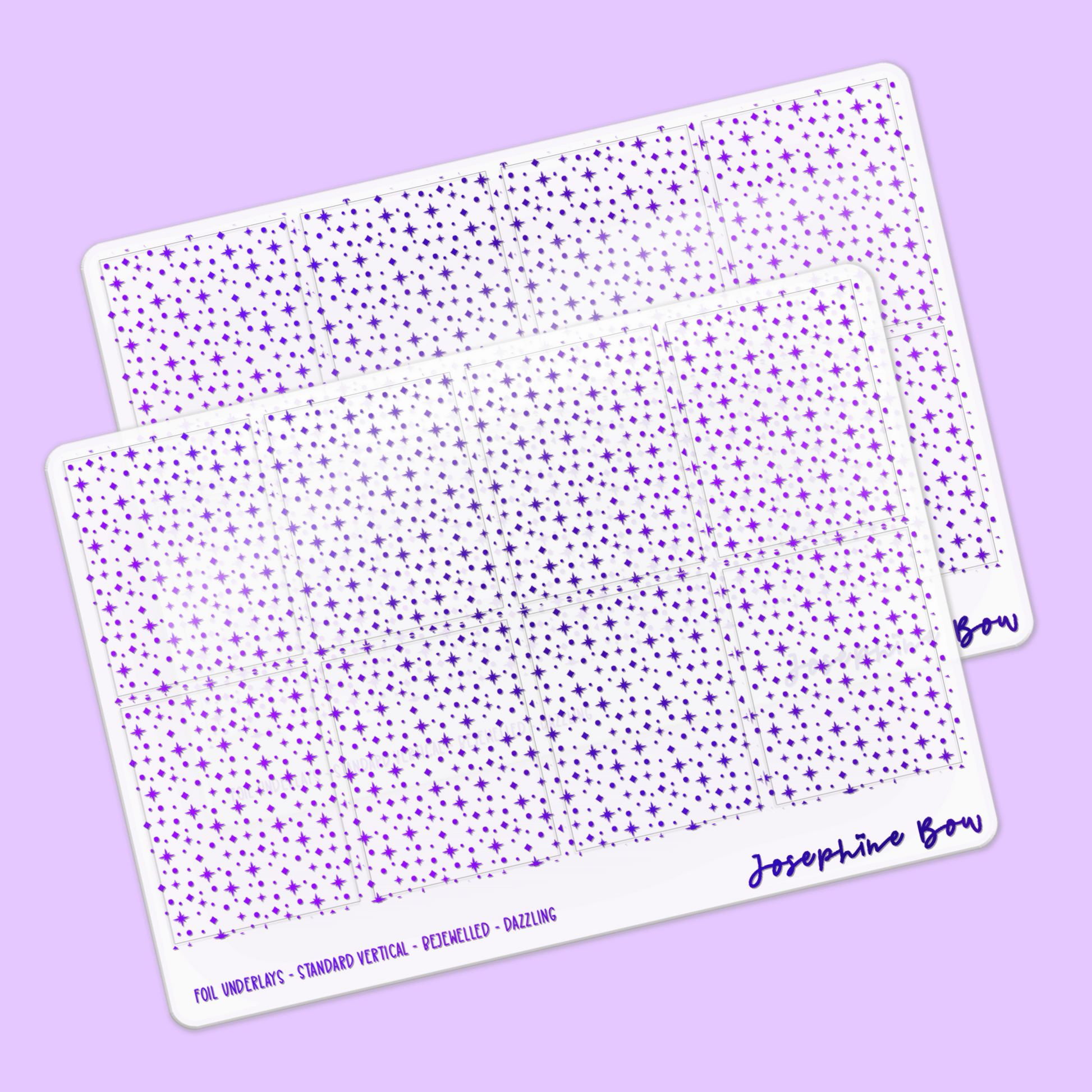 Decorative foiled full box underlay stickers designed for Standard Vertical or Hobonichi Cousin Planners. There are 8 boxes per sheet printed on premium quality matte transparent paper.