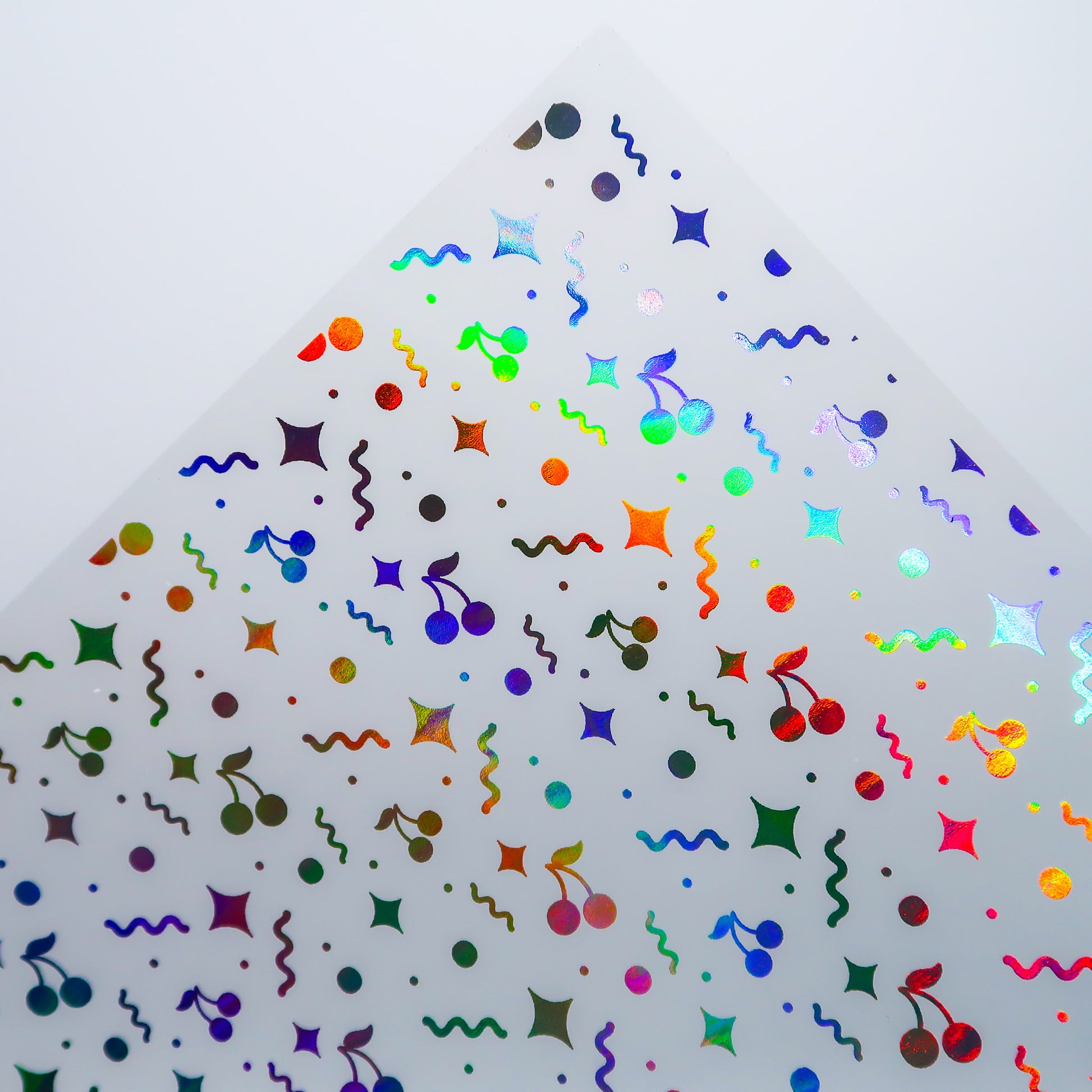 This retro inspired cherry and squiggle design acetate works well layered over the matching vellums in this collection.