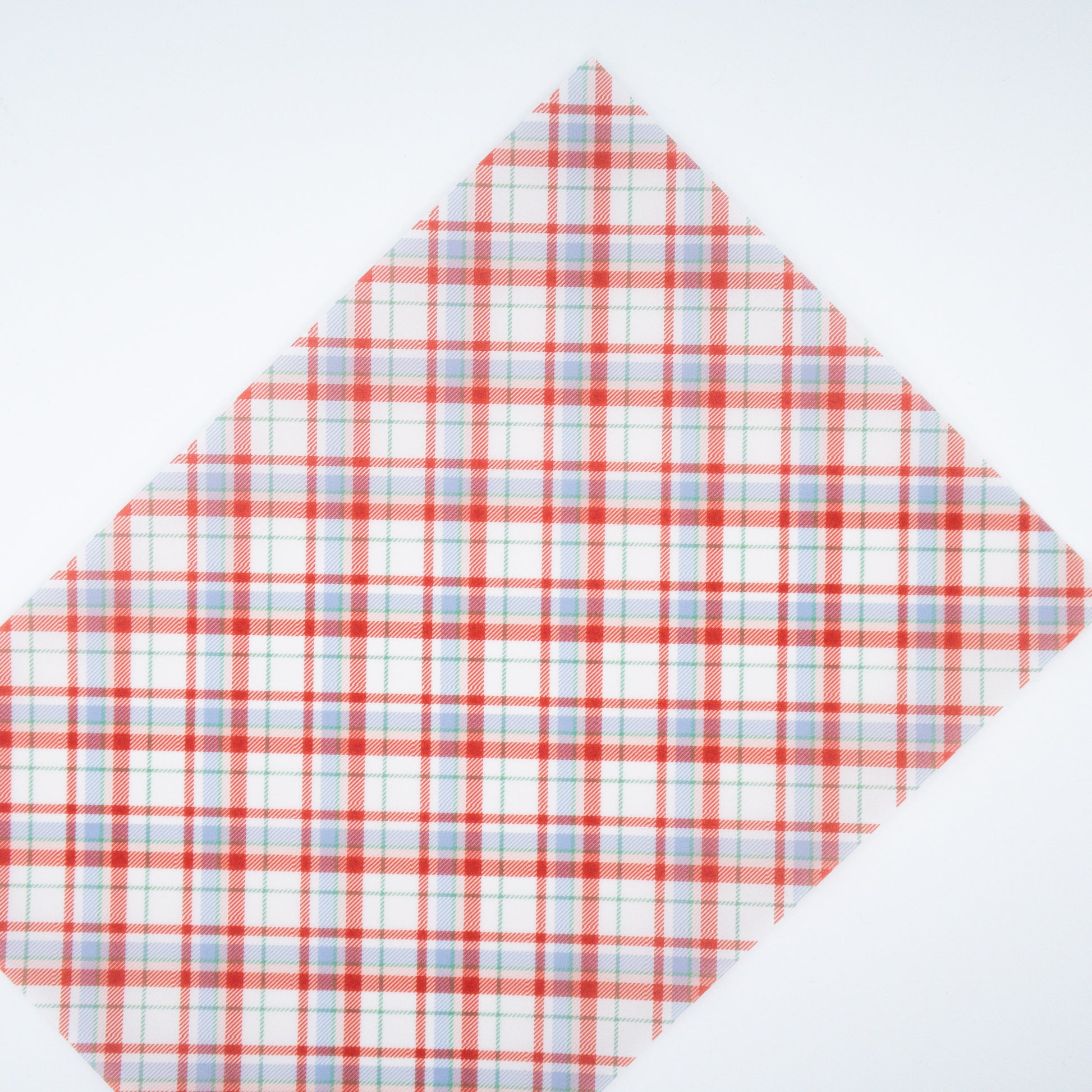 One sheet of A4 printed vellum or acetate with a plaid design in wintery shades.