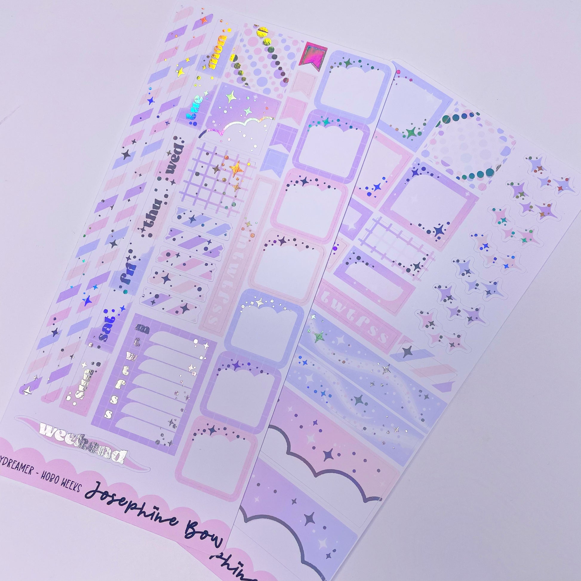 Holographic foiled 2 page weekly kit designed for the Hobonichi Weeks.