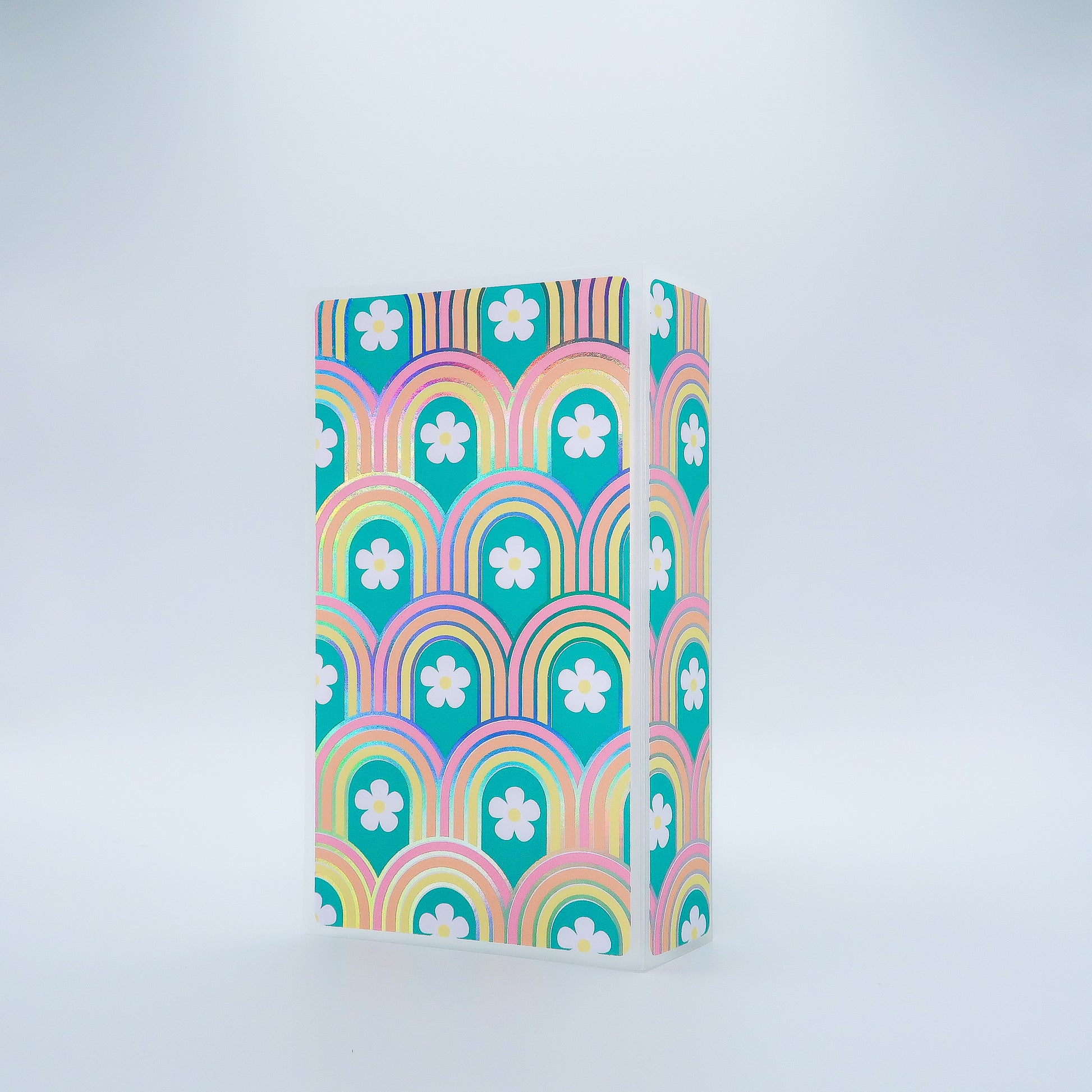 Strong but flexible cover with a printed and foiled design in vinyl.