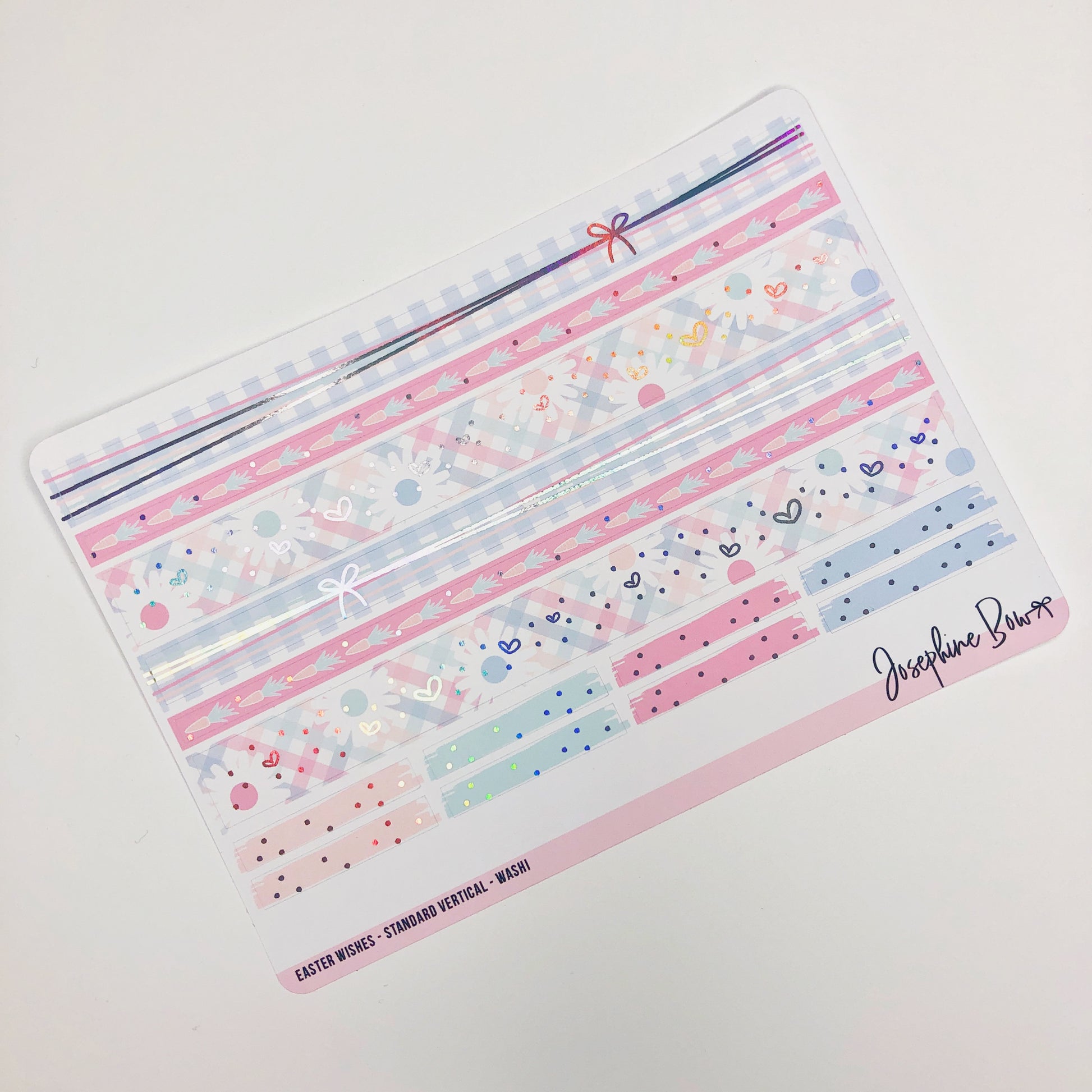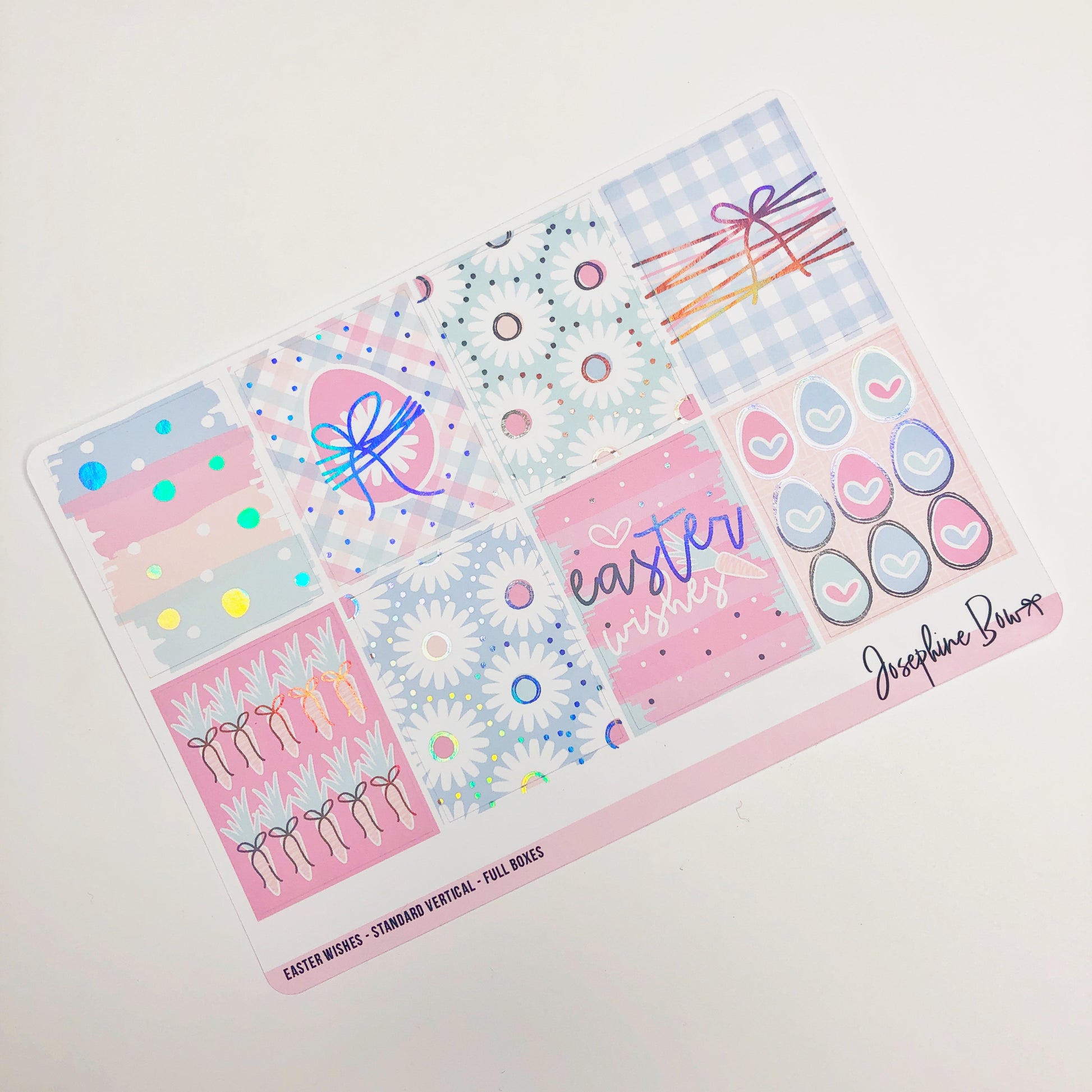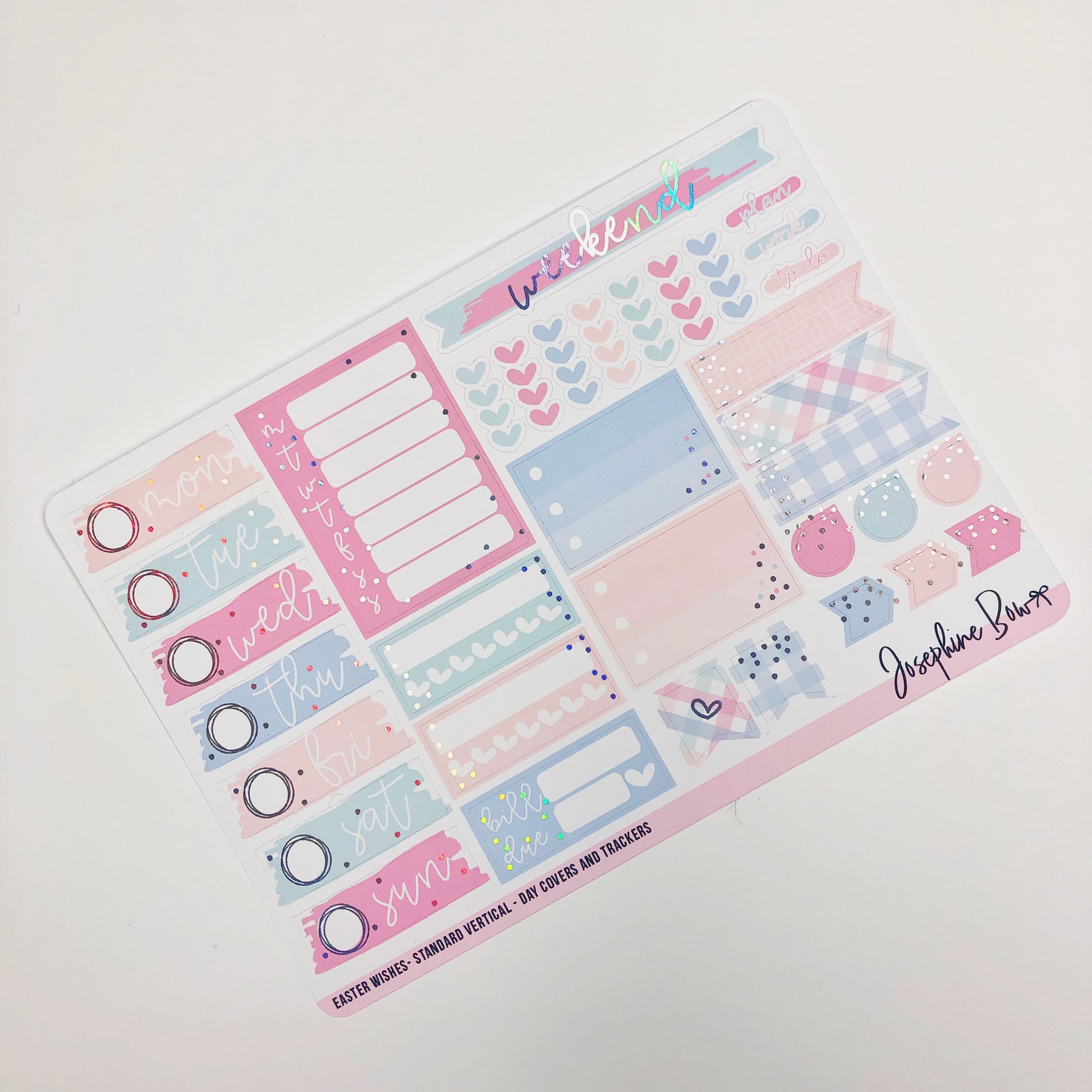 EASTER WISHES is a pretty, Spring and Easter themed and holographic foiled weekly kit designed for vertical planners, for example many styles of vertical planners and the standard Happy Planner.