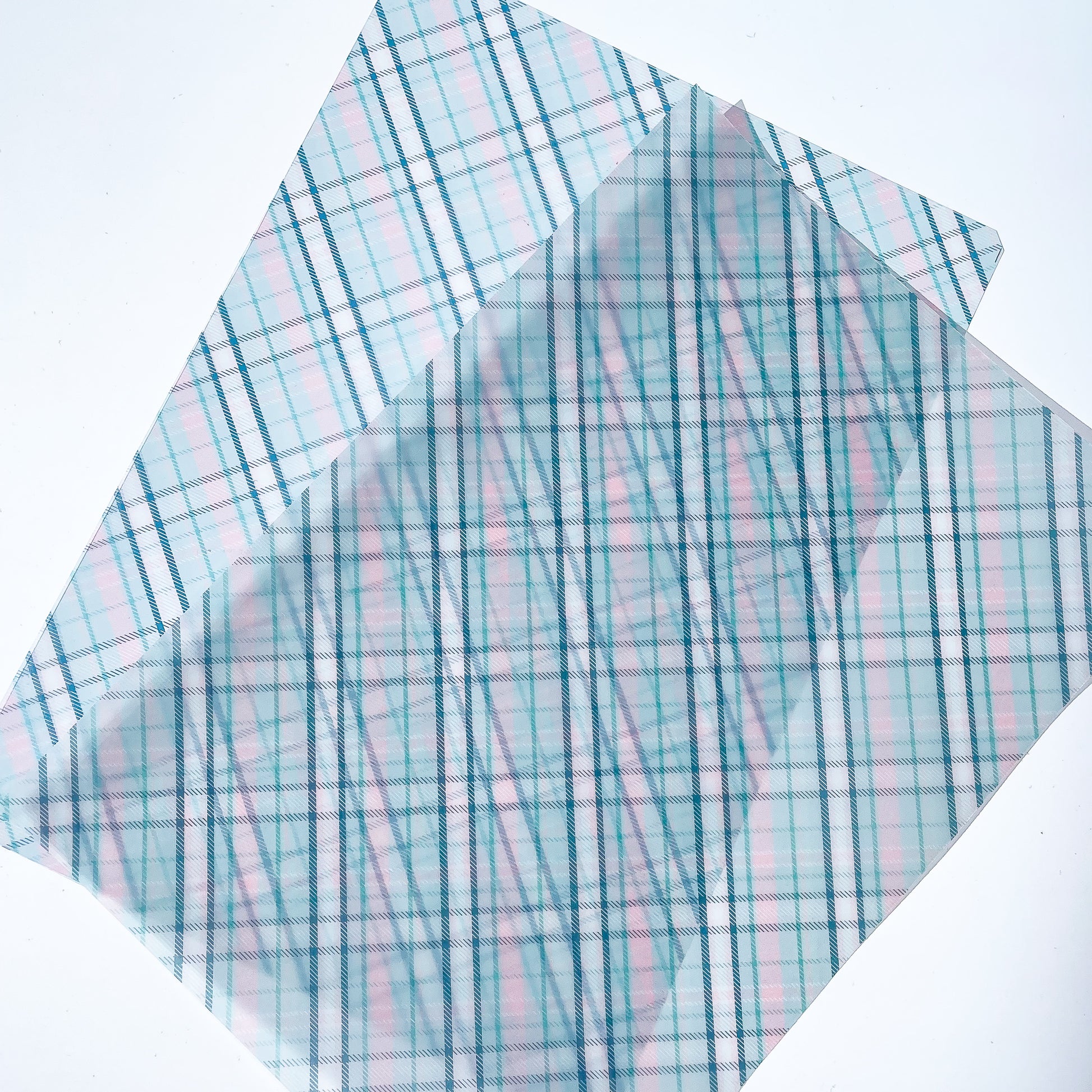 One sheet of A4 printed vellum or acetate with a pretty winter plaid design.