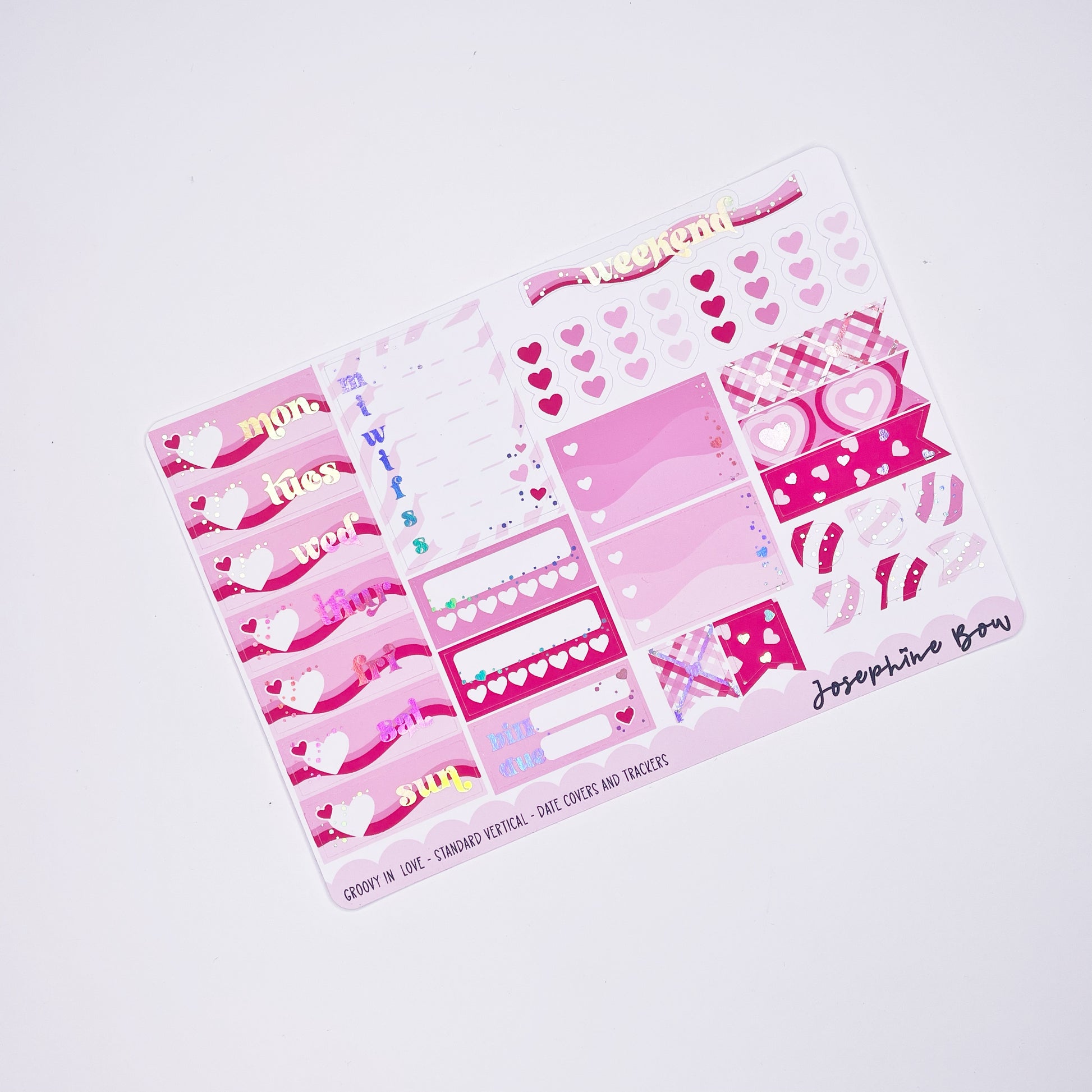 Holo foiled weekly kit designed for vertical planners. For example many styles of 1.5in vertical planners and the standard Happy Planner.