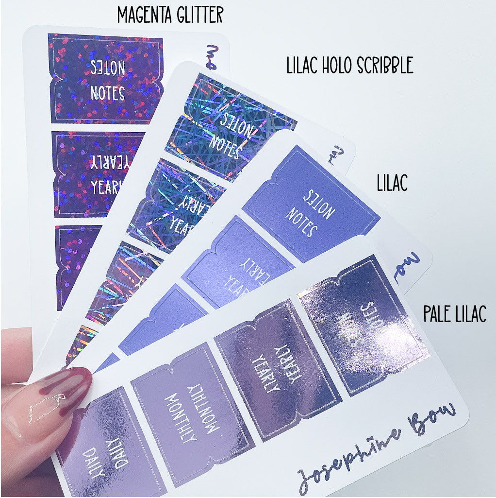 One set of foiled tabs on high quality vinyl.
