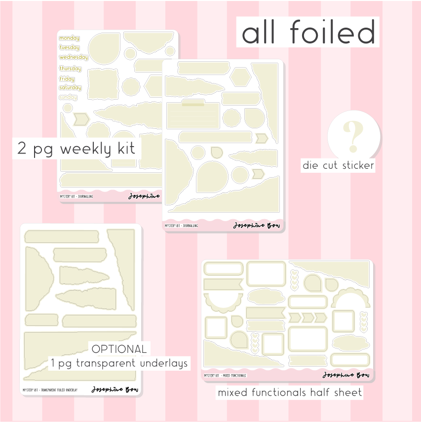 1 sheets of foiled underlay stickers in various journalling style shapes.