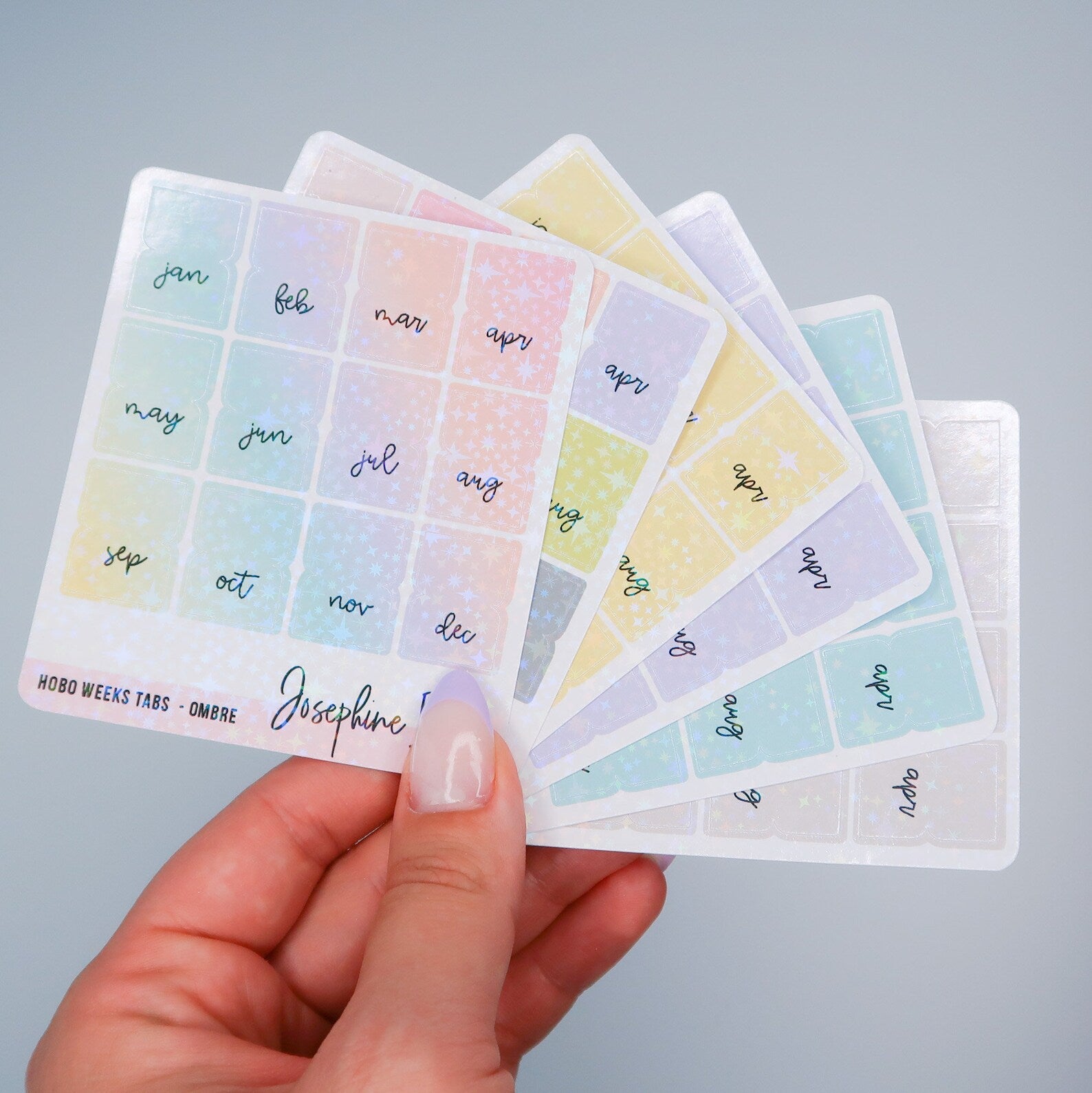 One sheet of monthly tabs in the colour of your choice. Specifically sized for Hobonichi Weeks but also perfect for Stalogy, Bullet Journalling etc.