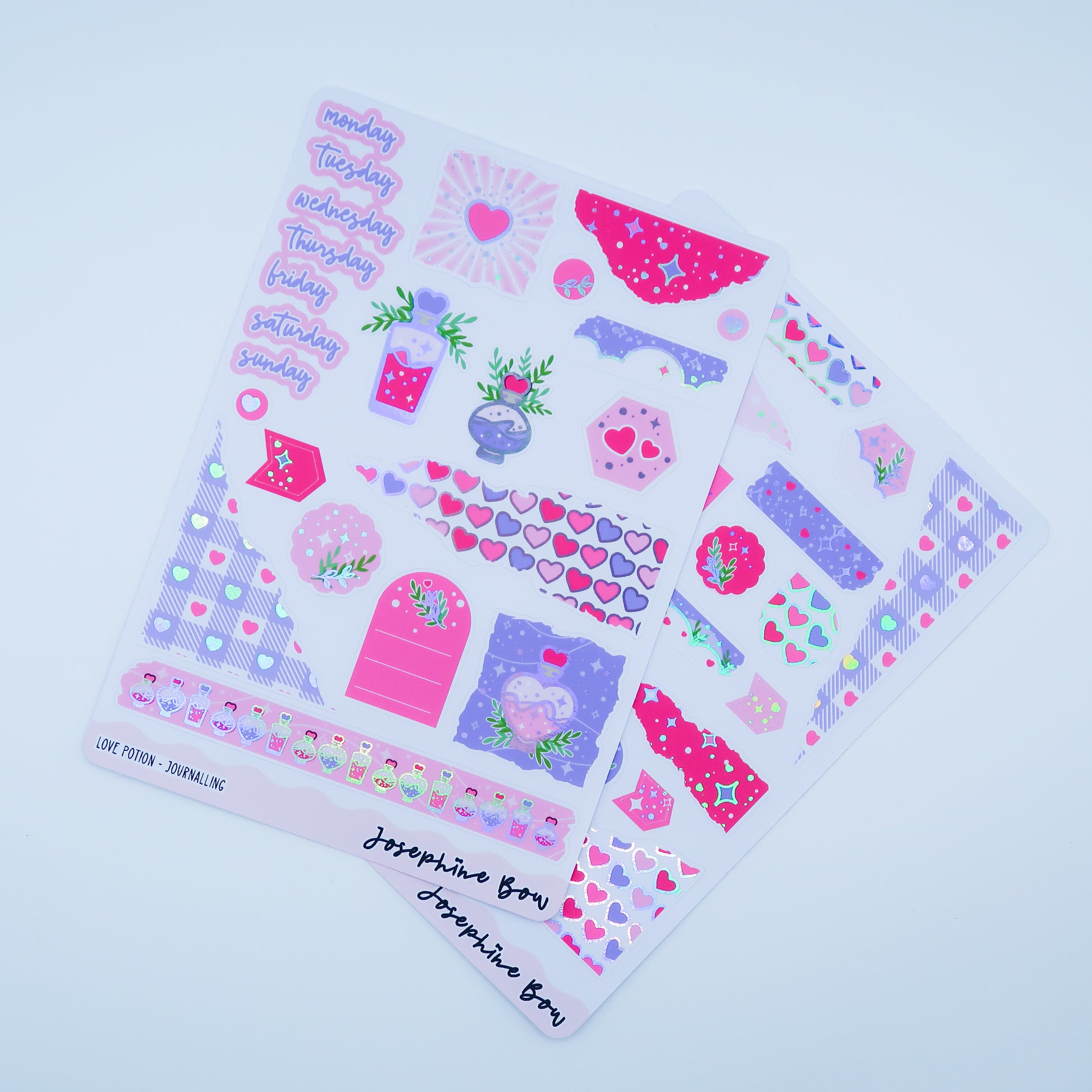 Cute Love Potion themed journalling kit designed for creative planner spreads.