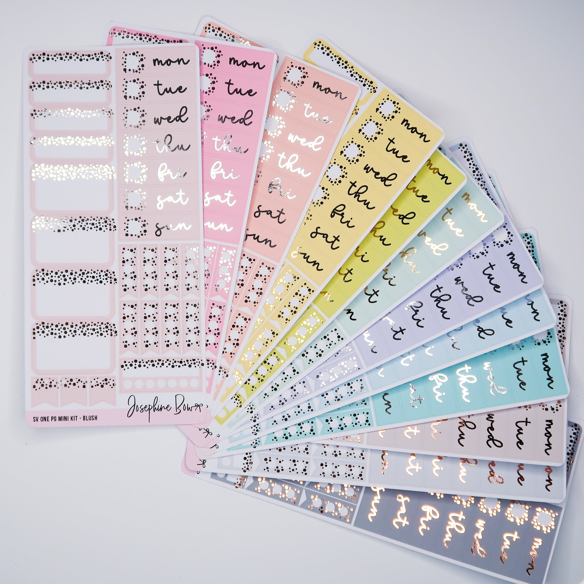 Can't decide which colour to choose? The Mini Kit Bundle includes one sheet of each colour with your choice of foil. Great essentials to have in your collection for mixing with kits, co-ordinating with your fave washi or just using to add some sparkle to your week.
