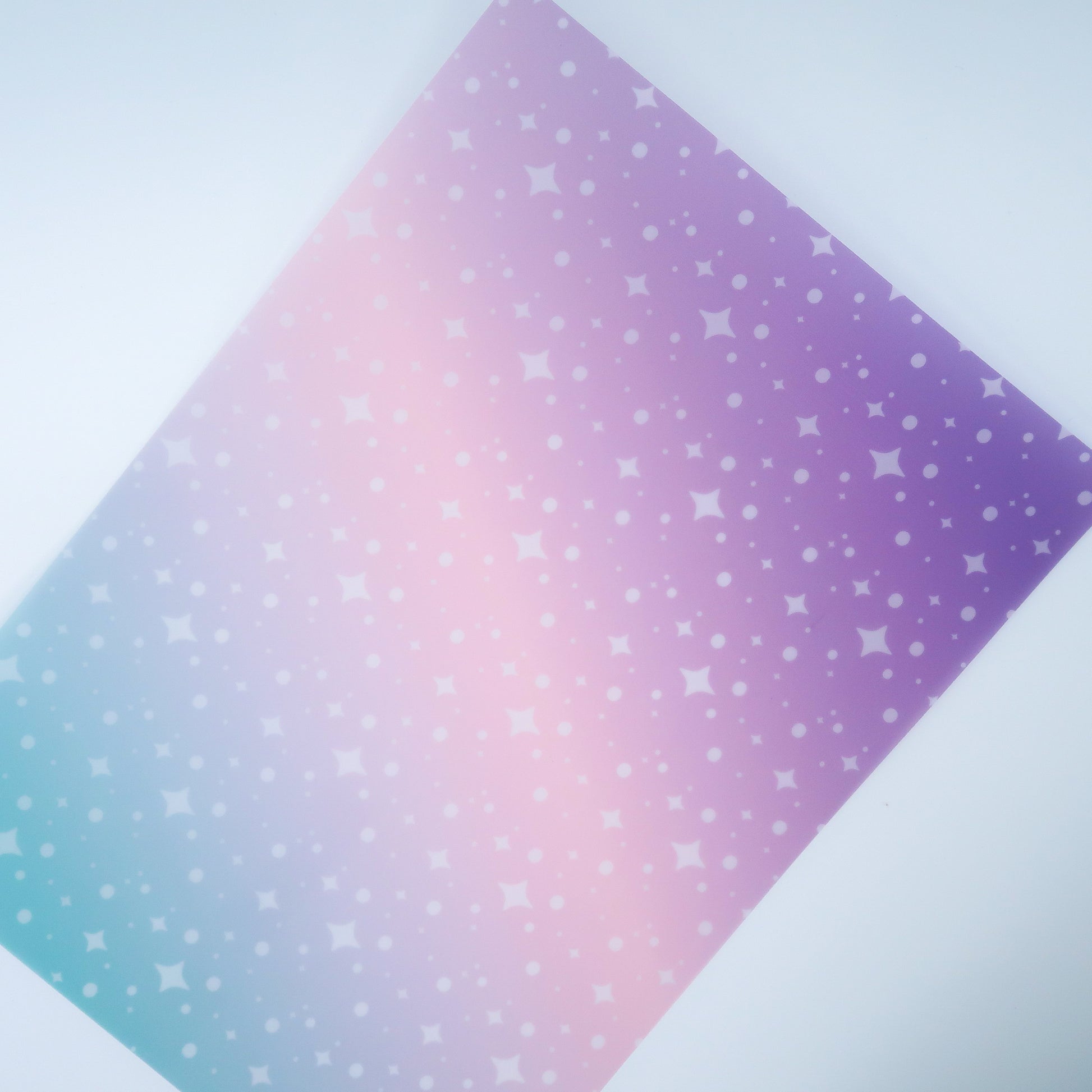 This is one sheet of A4 printed vellum or acetate with a scattered sparkle design on pretty ombre shades. Perfect for matching with the Moonlit Manifesting collection.