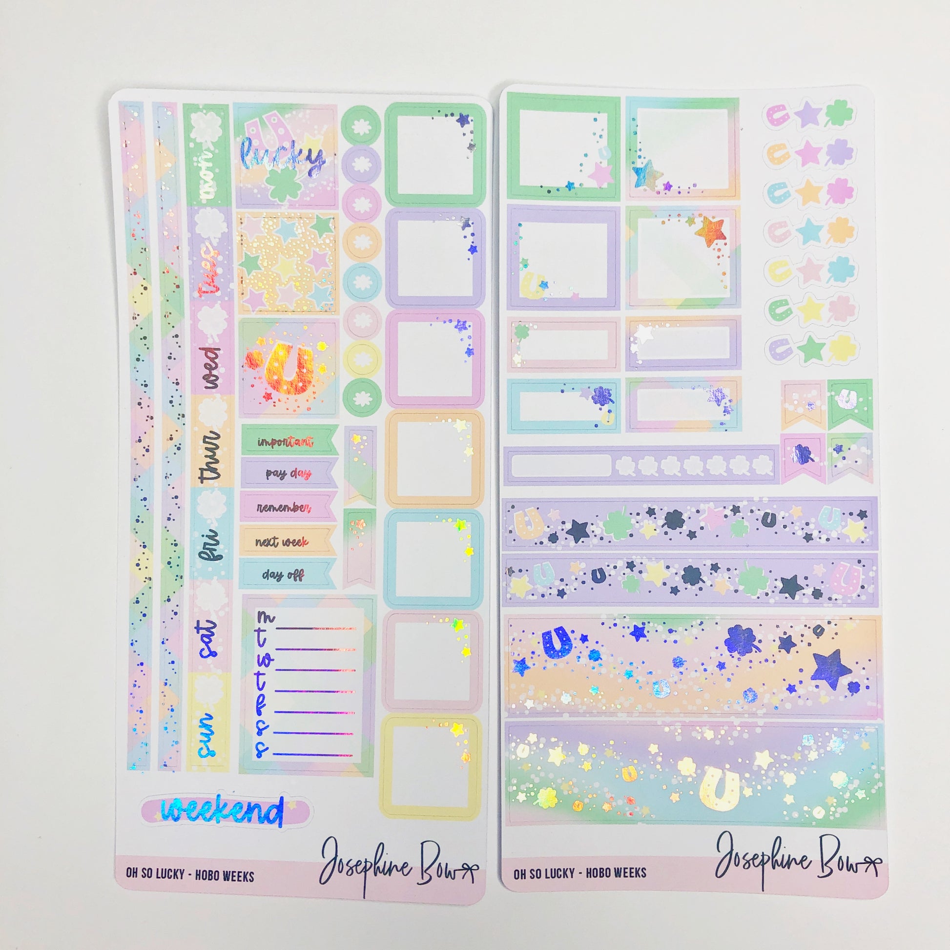 Oh So Lucky is a rainbow, St Patricks Day themed, holographic foiled weekly kit designed for the Hobonichi Weeks.
