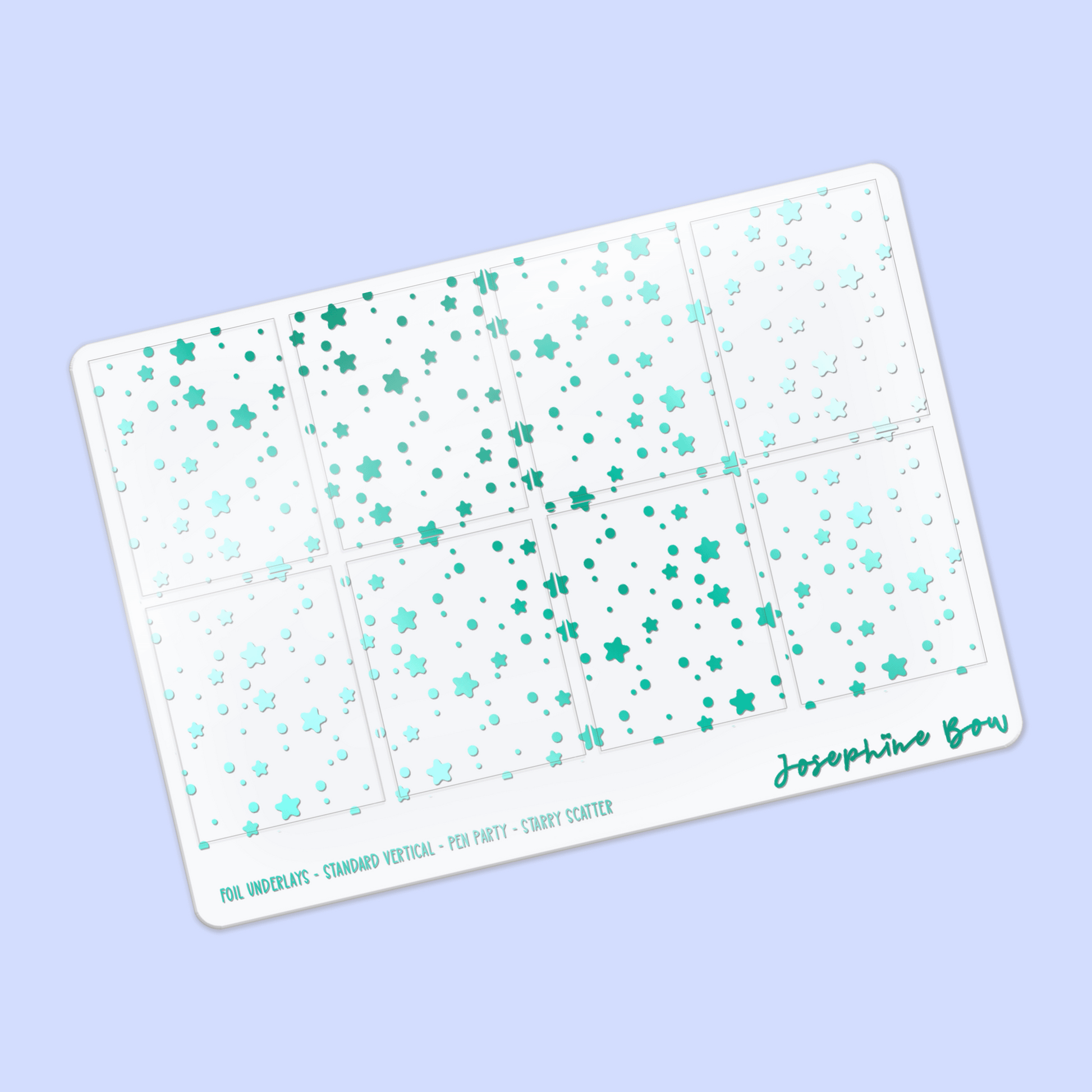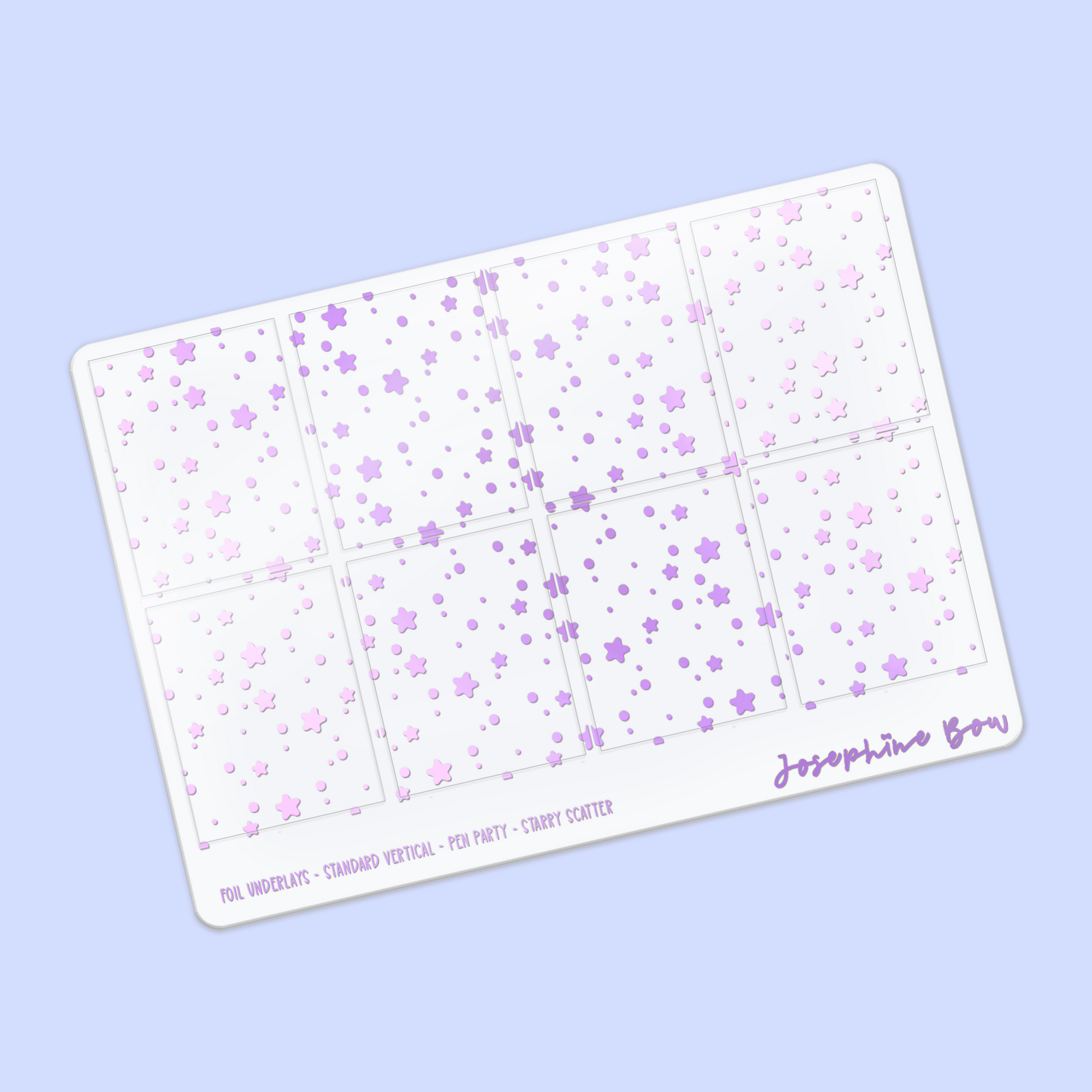Decorative foiled full box underlay stickers designed for Standard Vertical or Hobonichi Cousin Planners. There are 8 boxes per sheet printed on premium quality matte transparent paper.