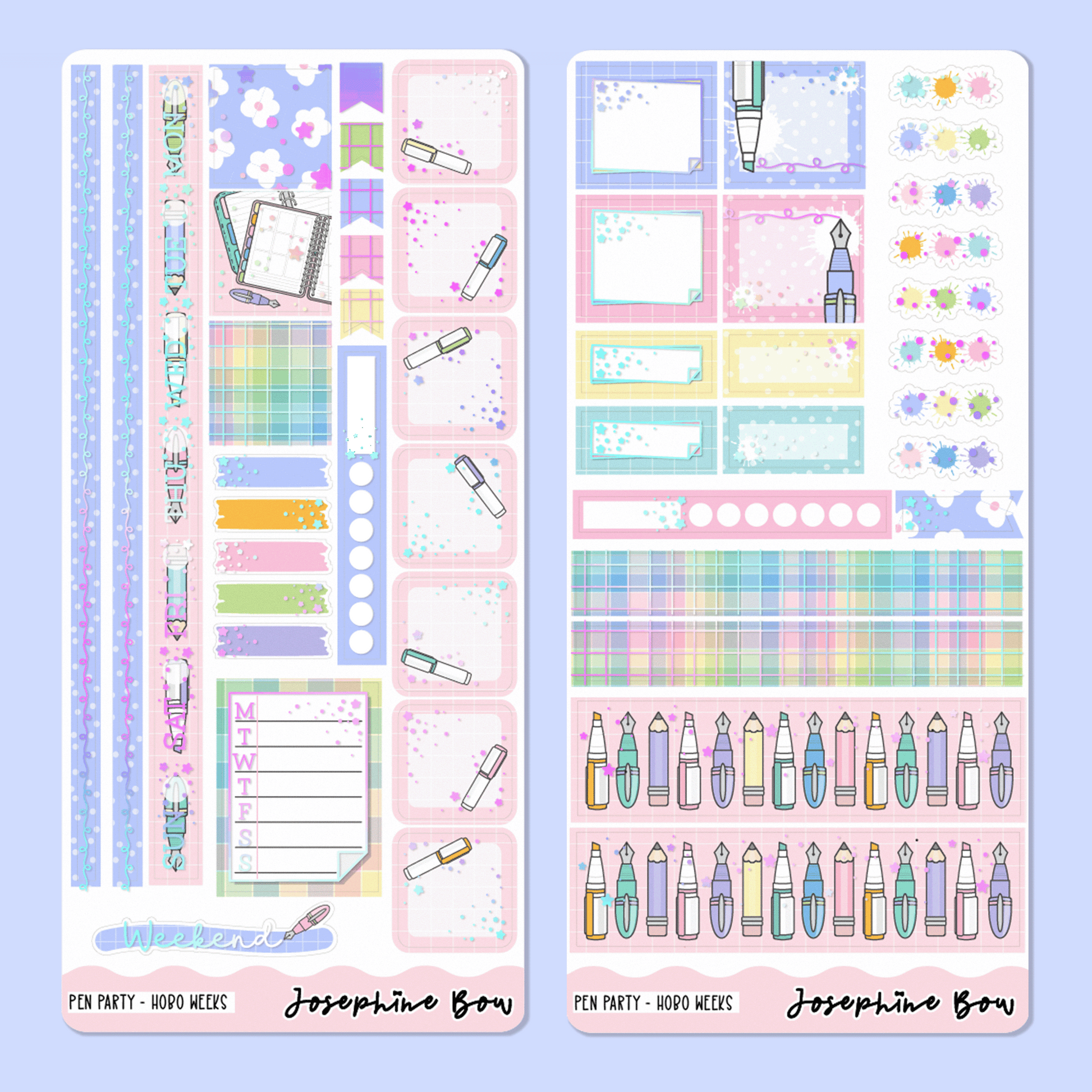 This is a holographic foiled weekly kit designed for the Hobonichi Weeks. It includes deco boxes, functional boxes, date covers, washi strips, checklists, icons and more.