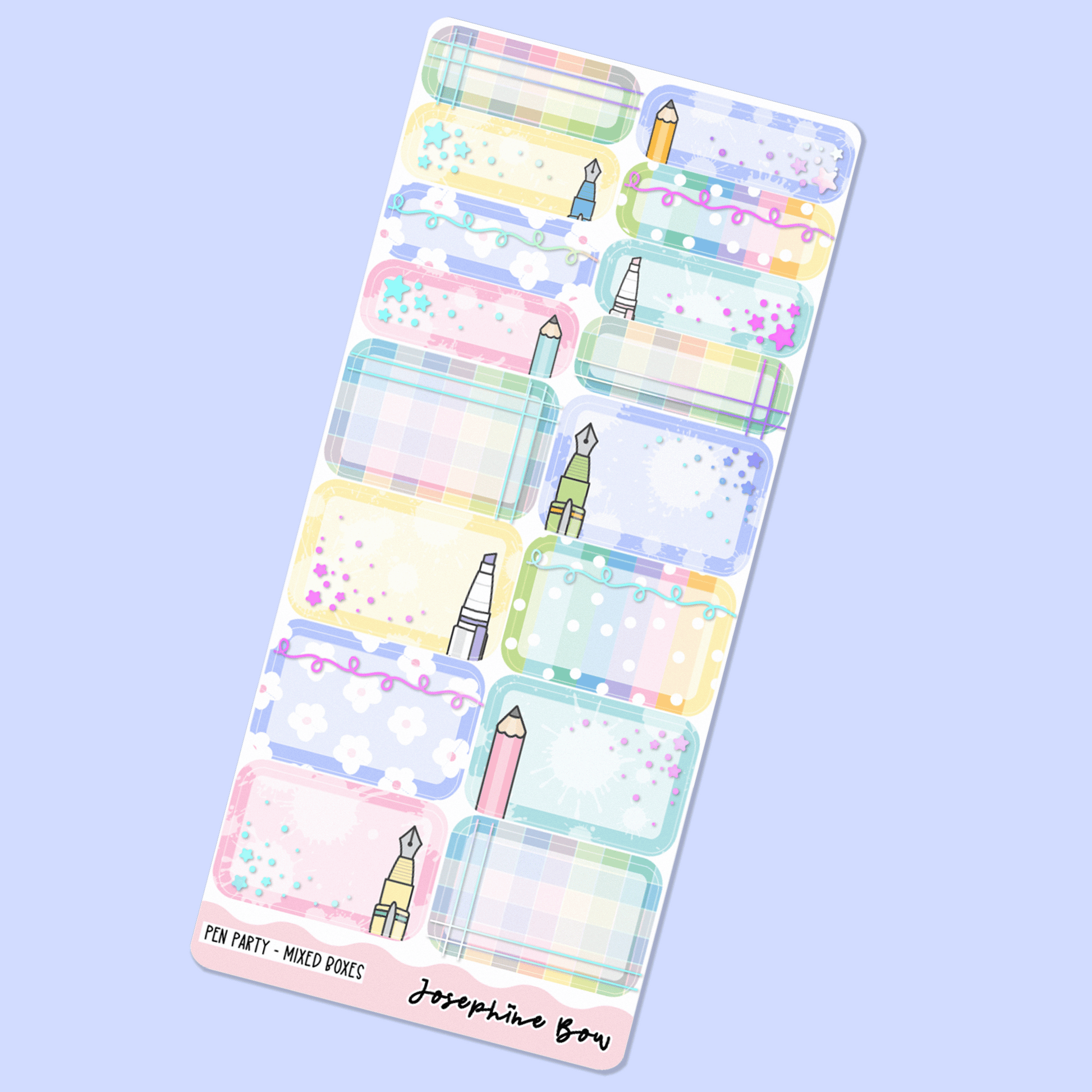 This is one sheet of mixed half and quarter boxes in a pretty pastel stationery theme. These are great essentials to have in your collection for mixing with kits, co-ordinating with your favourite washi or just using to highlight a particularly important task or event.