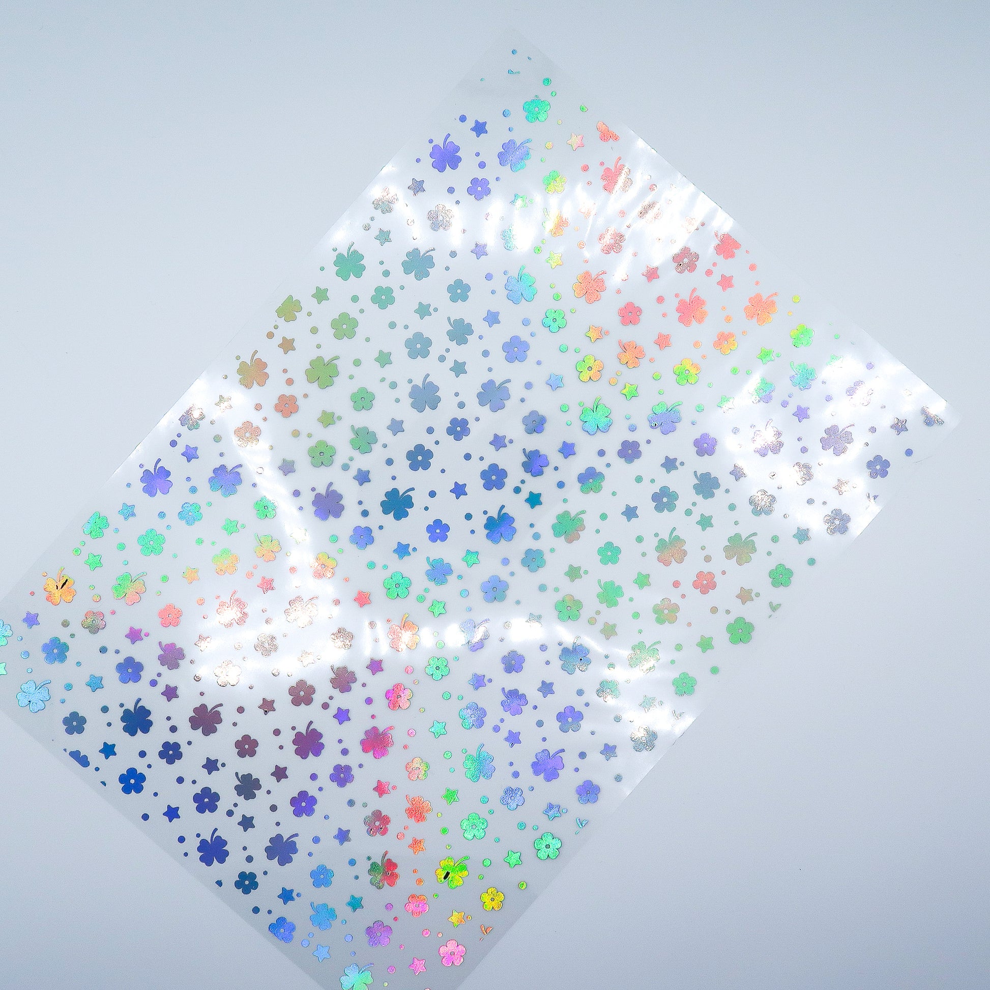 One sheet of foiled acetate with a scattered design of daisies, shamrocks and stars. Compliments the other items in the Pot Of Gold collection.