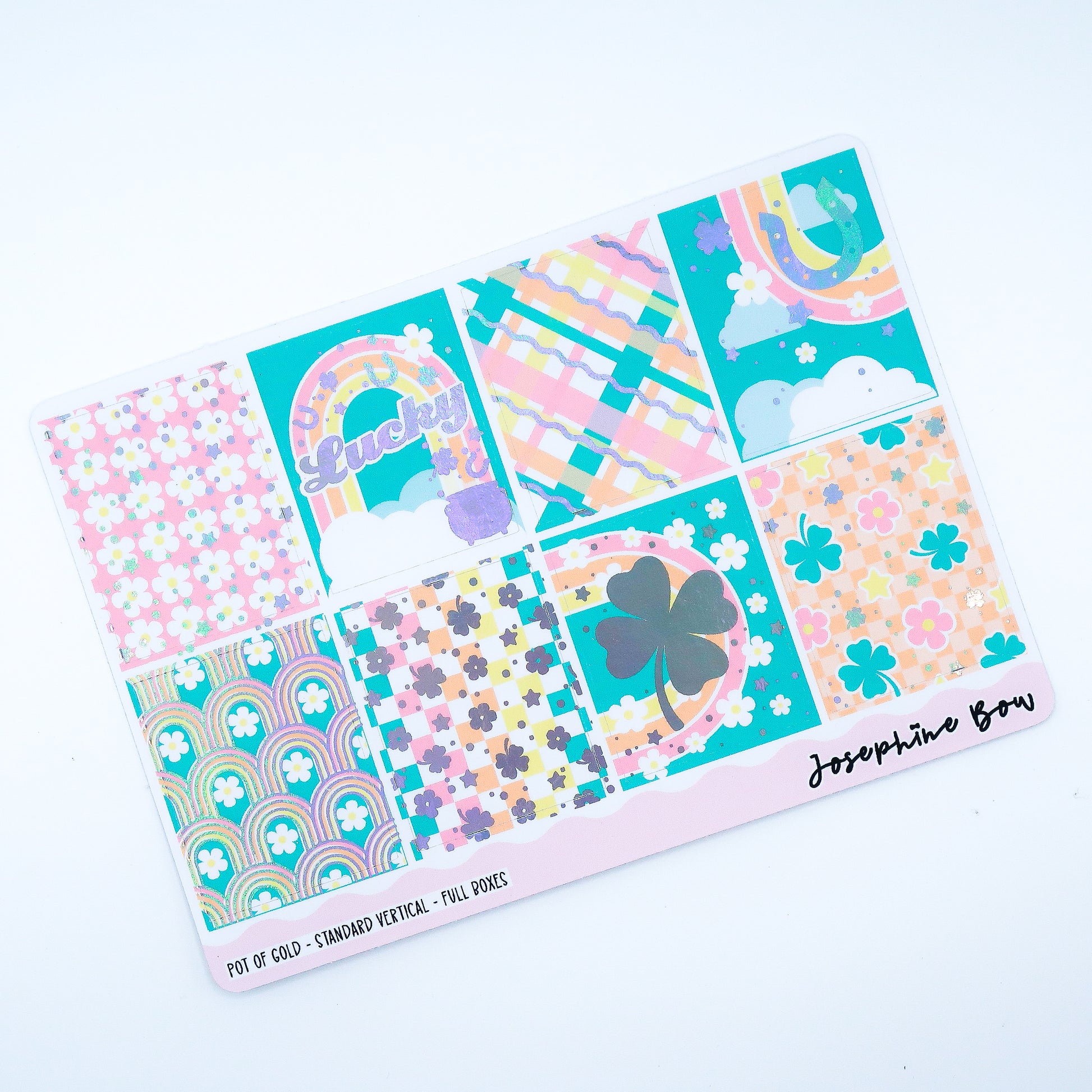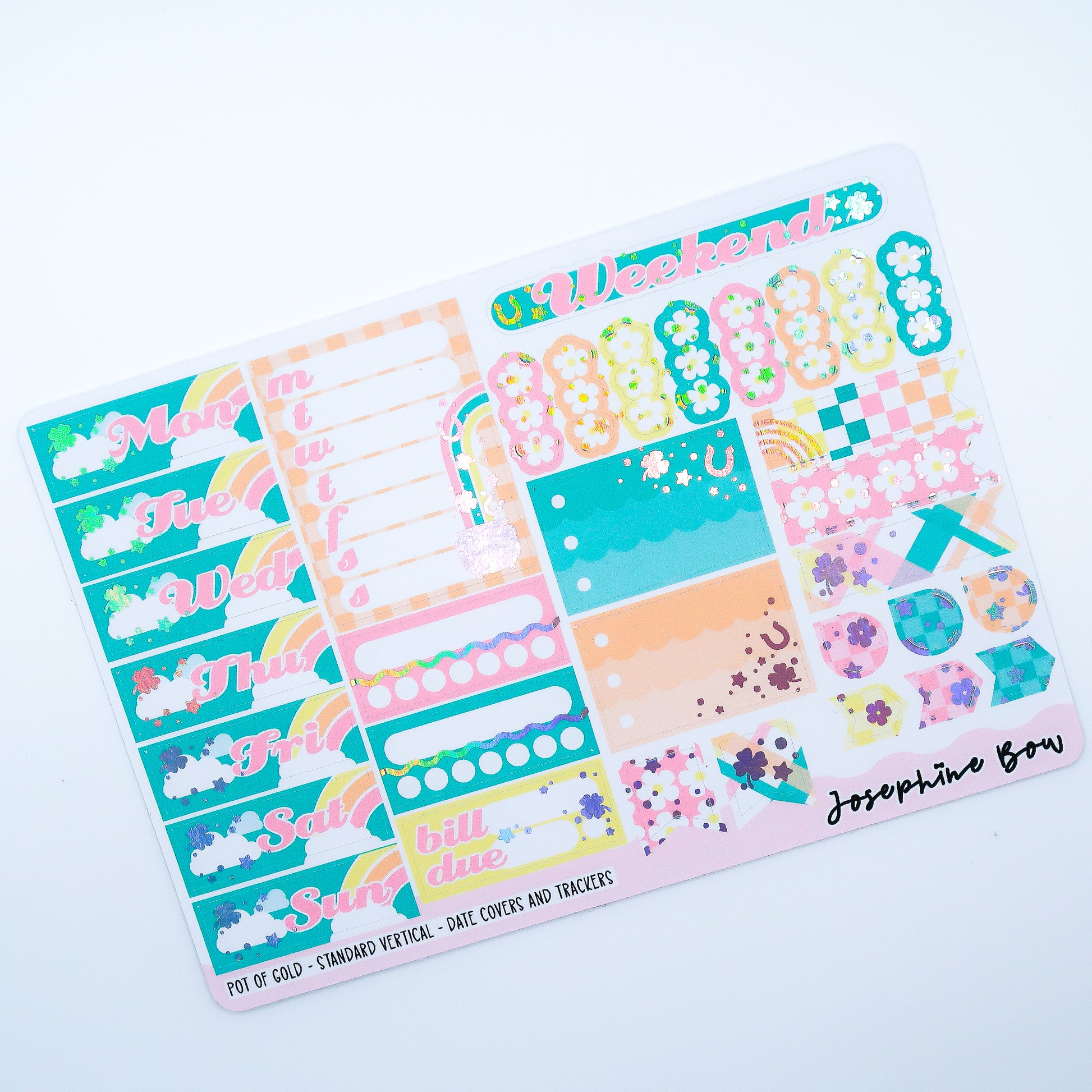 This is a holographic foiled weekly kit designed for vertical planners. It will fit any 1.5 inch vertical planner and the standard Happy Planner.