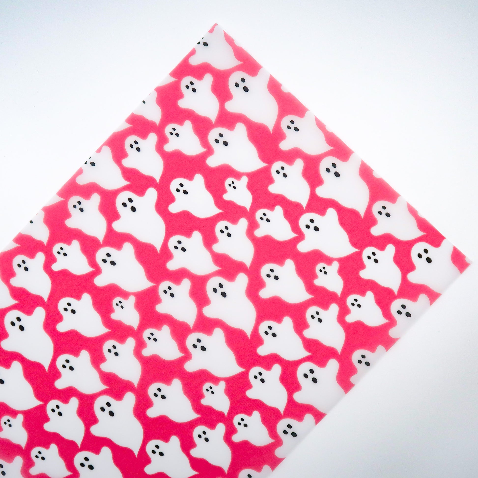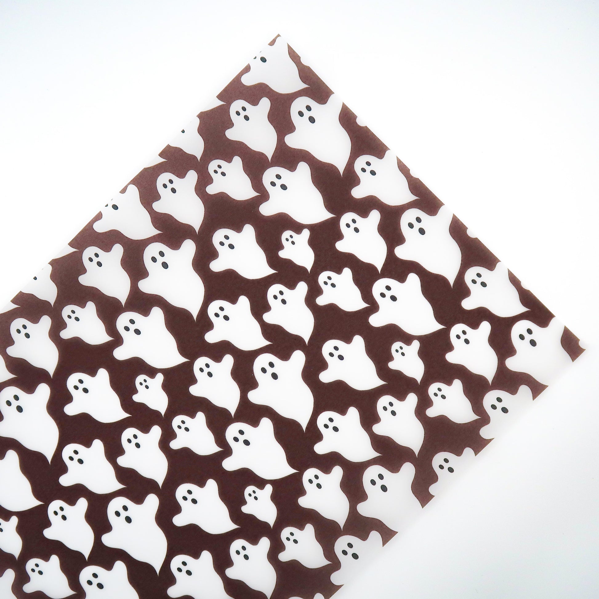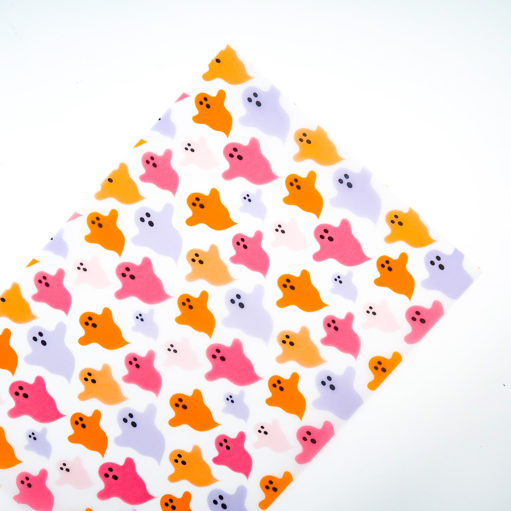 One sheet of A4 printed vellum with a multi coloured ghost design.
