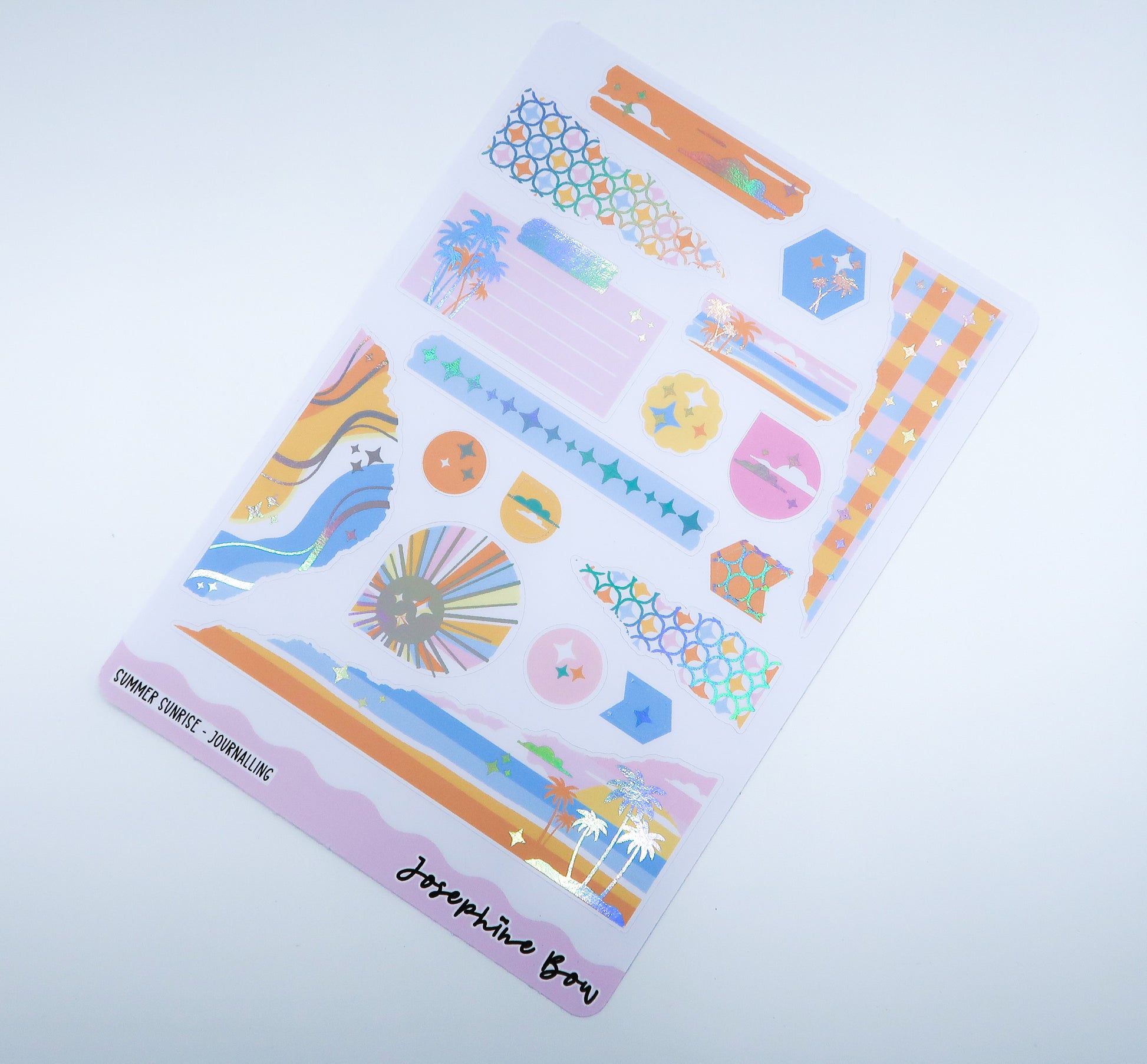 Includes, deco boxes, functional boxes, date covers, washi strips, checklists, icons and more all scattered with gorgeous holographic foil details.