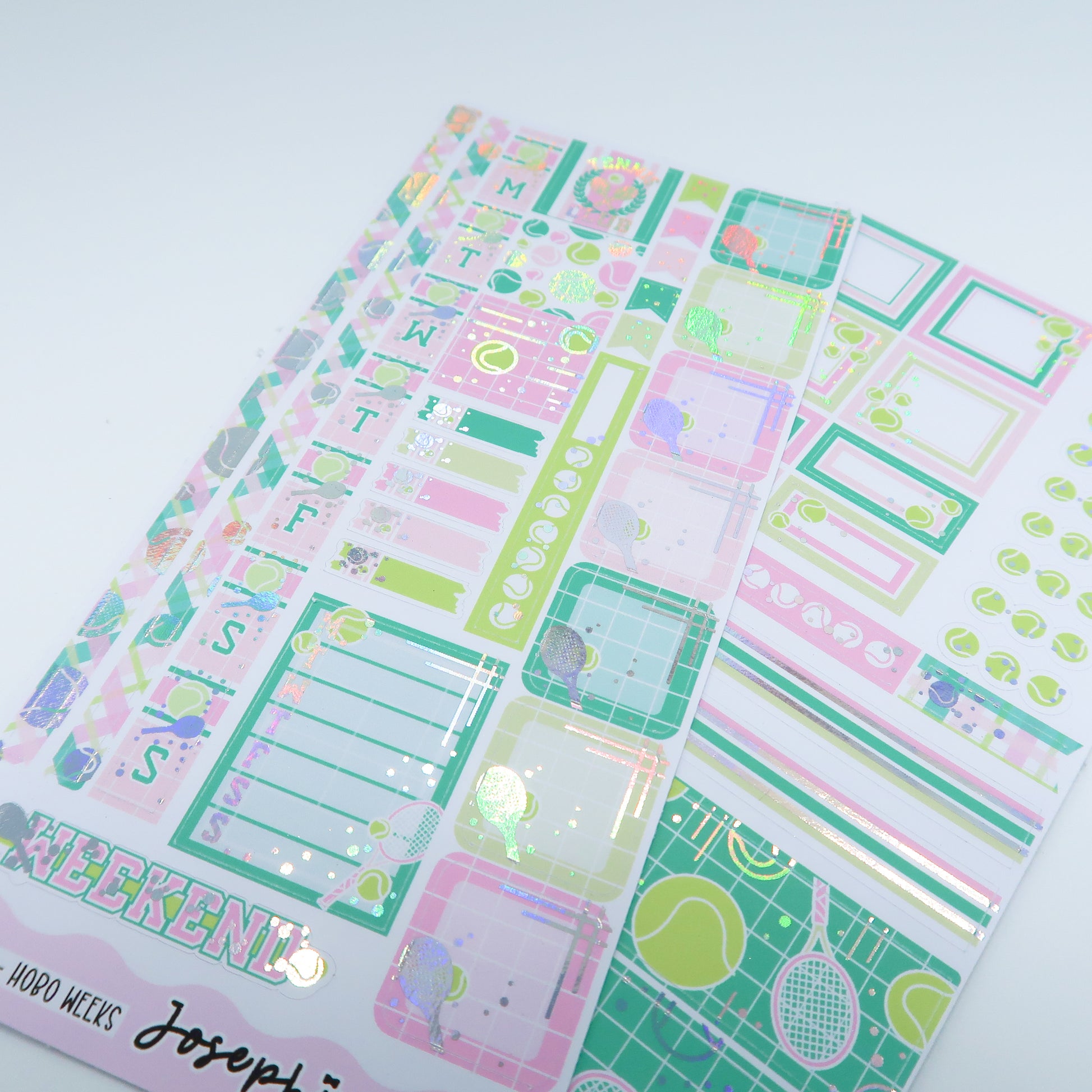 Tennis Club is a fun, tennis tournament themed kit with holographic foiled details.