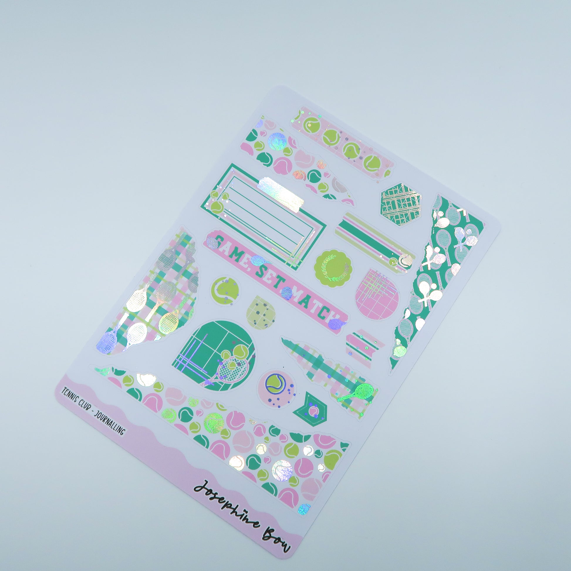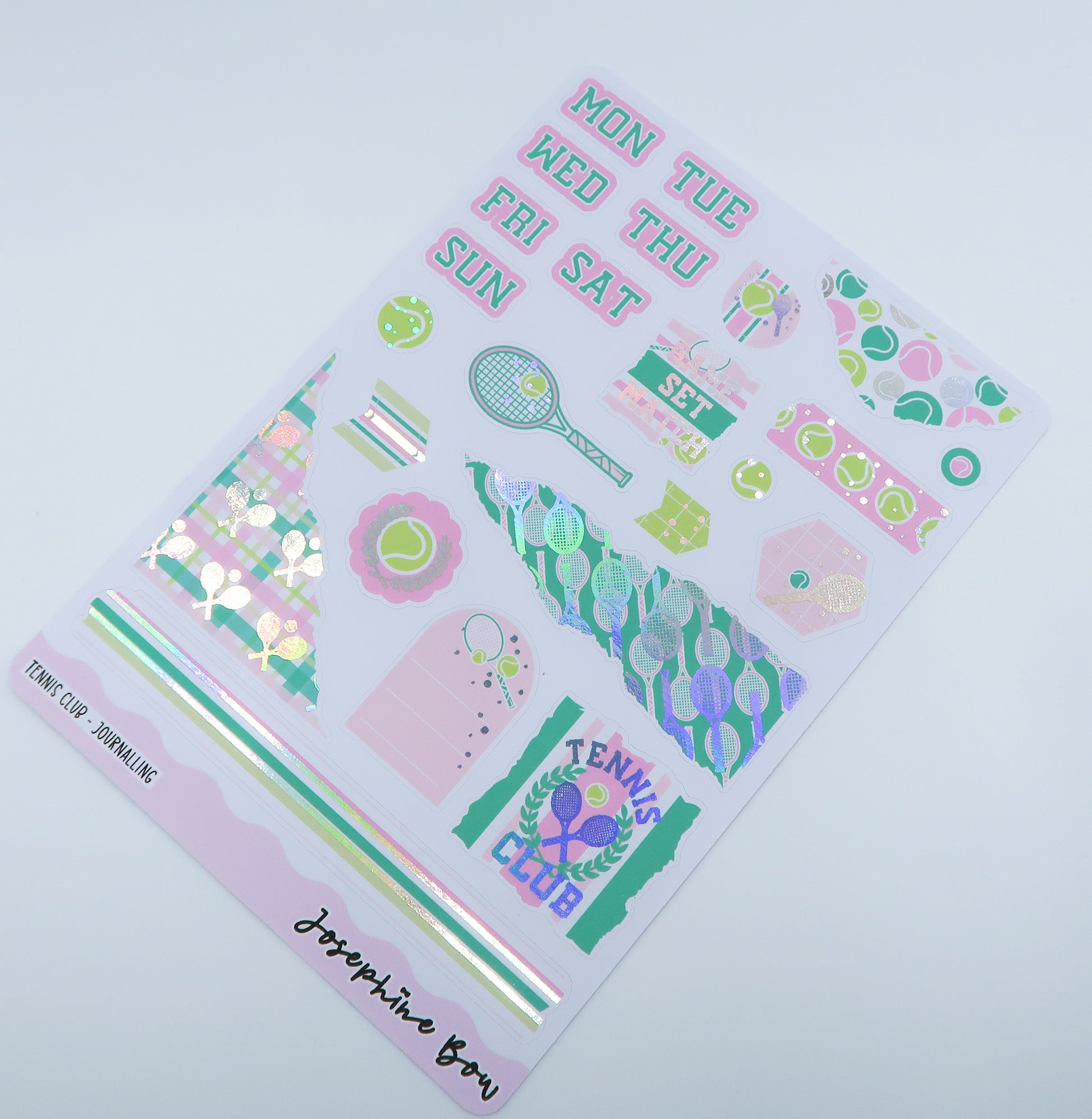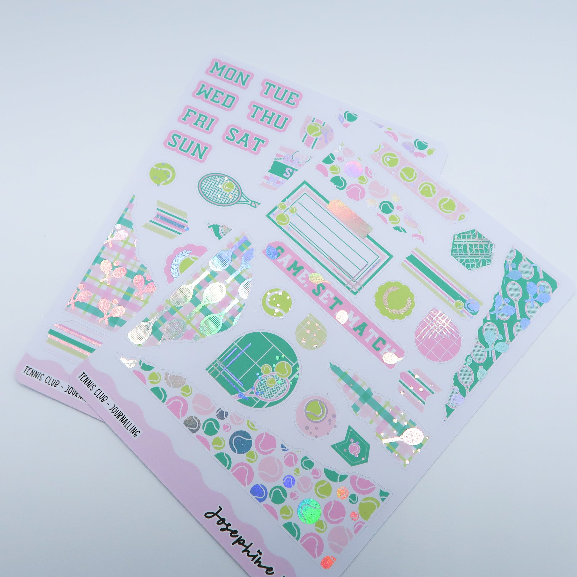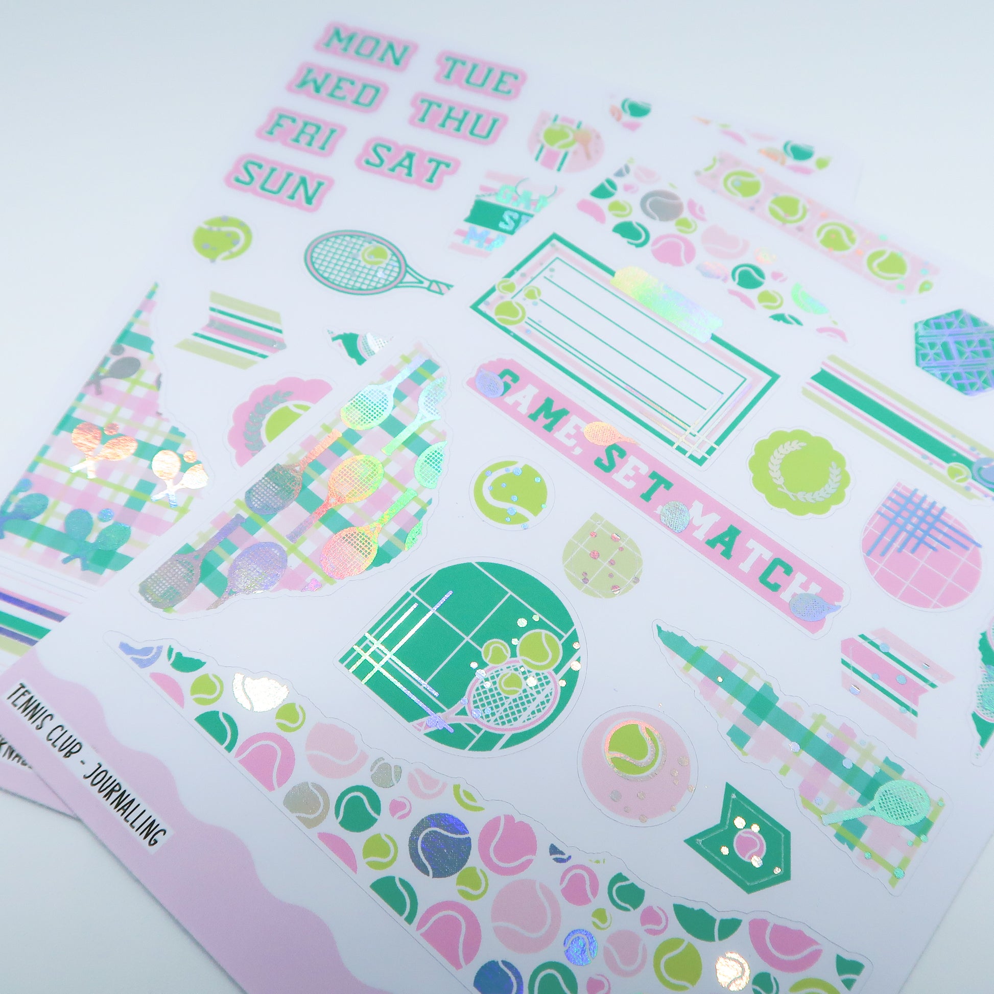 Tennis Club is a fun, tennis tournament themed kit with holographic foiled details. Designed for creative planner spreads.