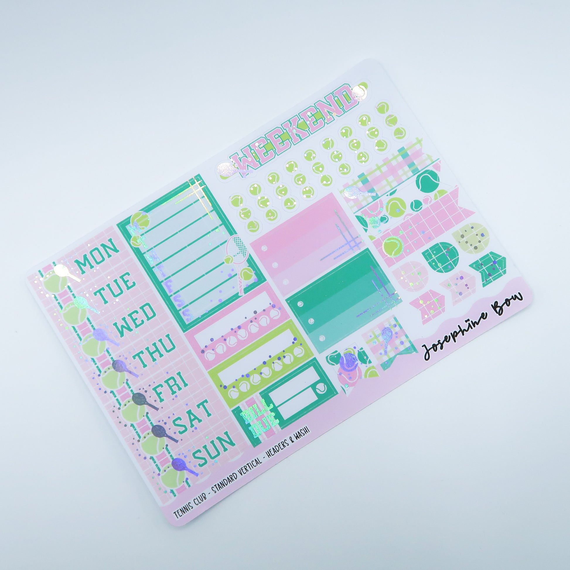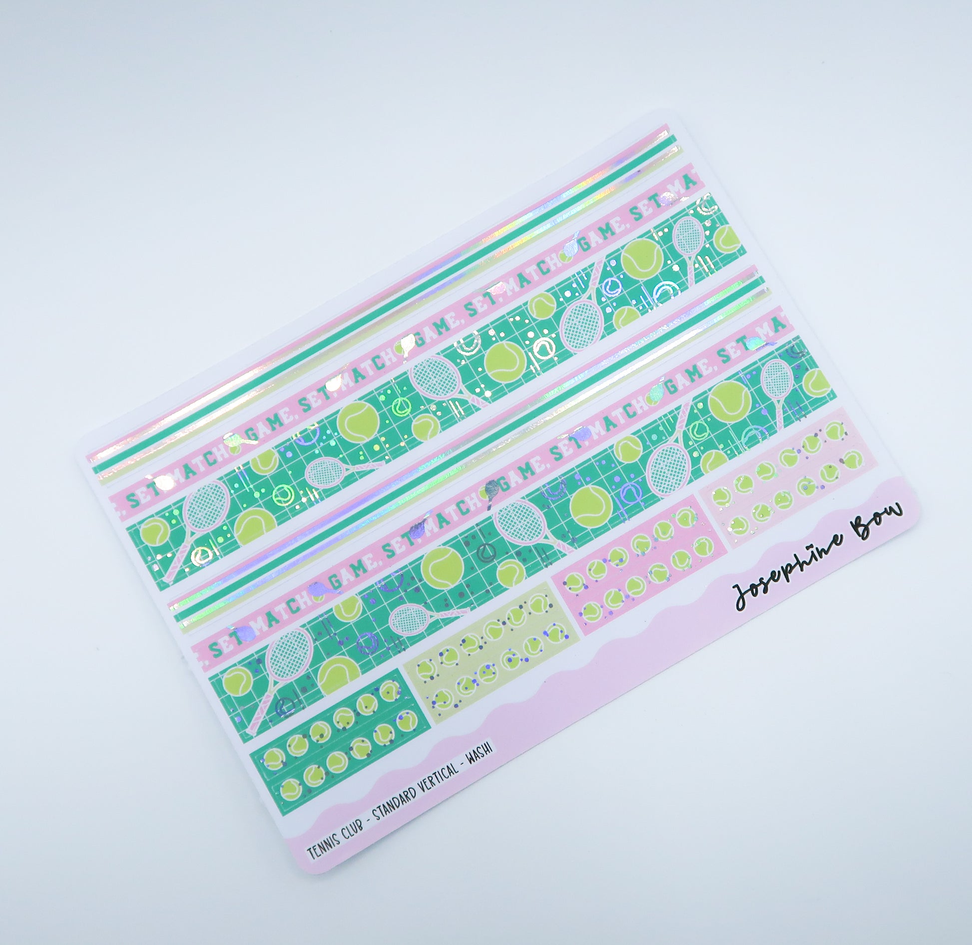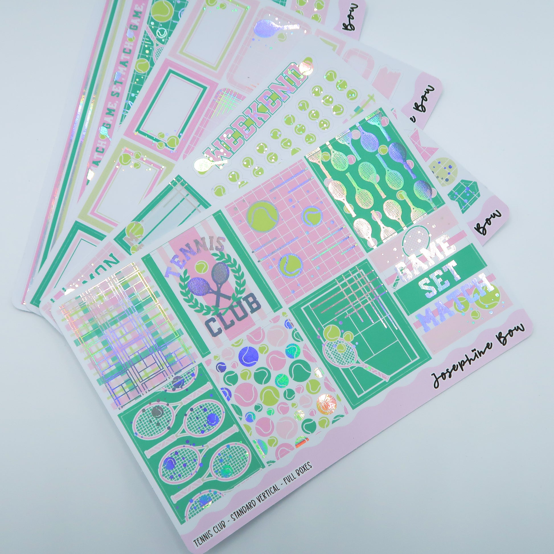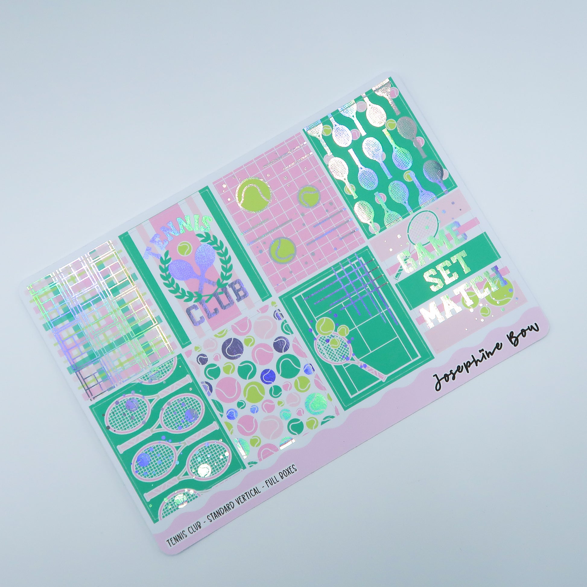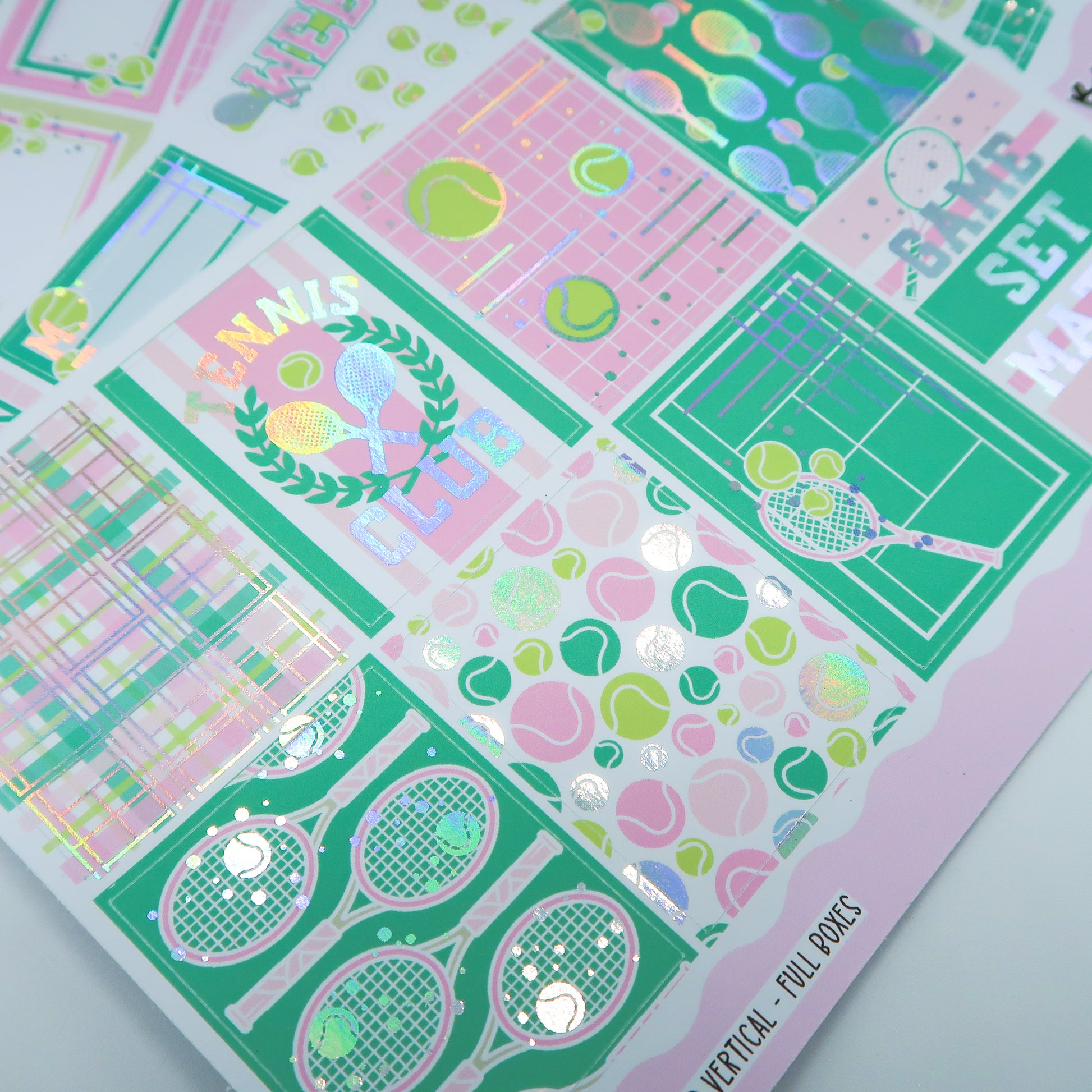 Tennis Club is a fun, tennis tournament themed kit with holographic foiled details.