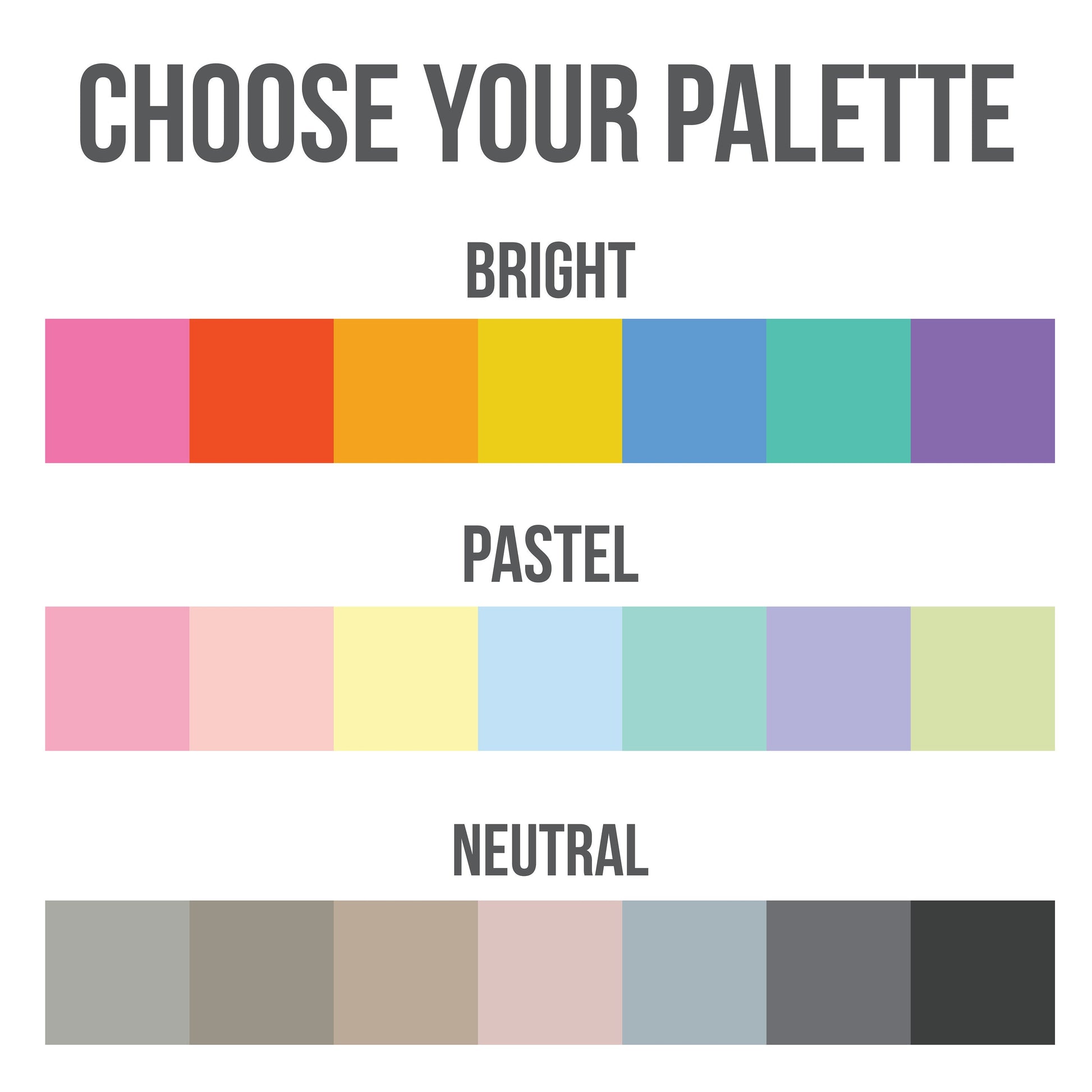 Choose from 4 colour options - brights, neutrals, pastels and black.