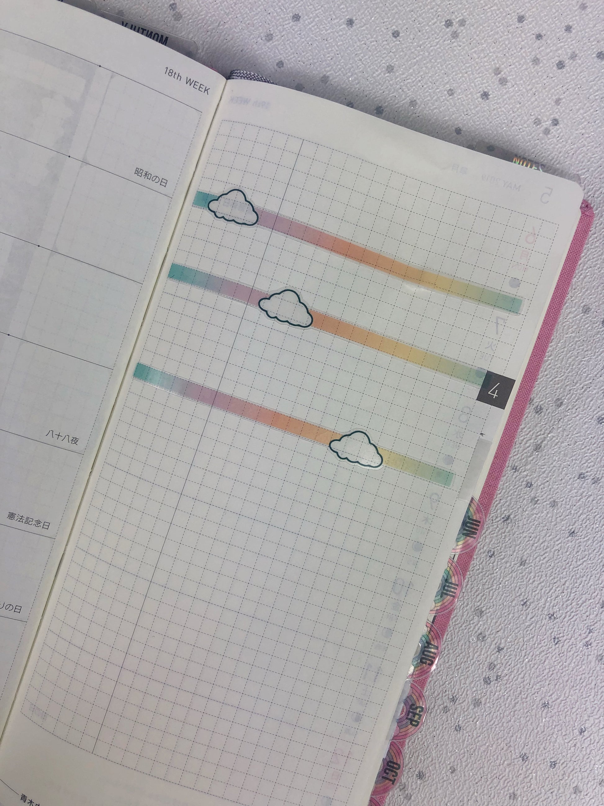 Each cloud divider strip is sized to fit the width of the hobonichi page, great for between days or for separating the notes pages. They also work well in the cousin.